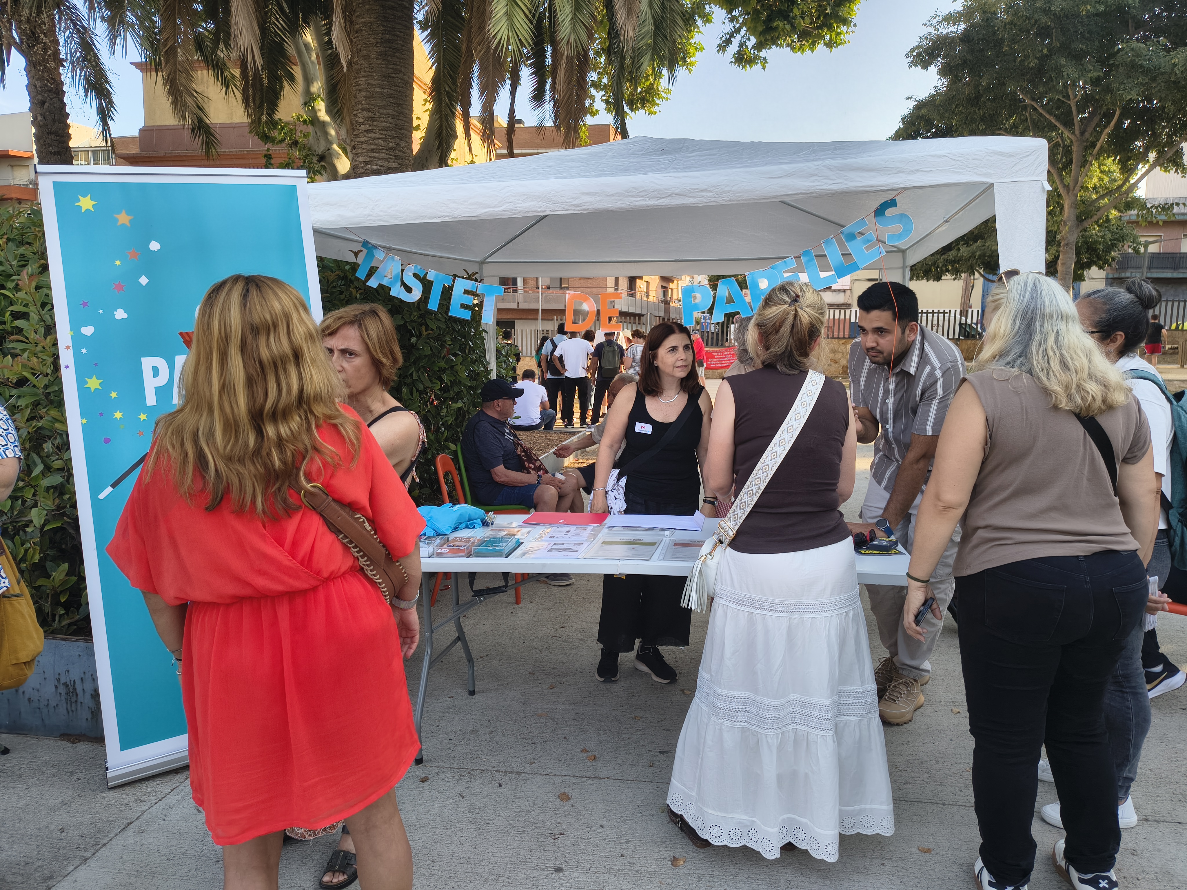 La festa ha seguit als espais exteriors del CC L'Escorxador, en diferents punts. Gràcies als voluntaris i les voluntàries del VxL s'ha fet un tast del programa de parelles lingüístiques mentre que, en altres estands, diverses entitats col·laboradores del VxL han ofert demostracions de les seves activitats i han animat a tothom a participar-hi: l'Associació de Veïns del Centre ha muntat un tauler gegant d'escacs, la Badalona Sardanista ha ensenyat com fer els primers passos d'una sardana i tothom ha pogut jugar a bitlles catalanes amb el Club de Bitlles Termites de Llefià.