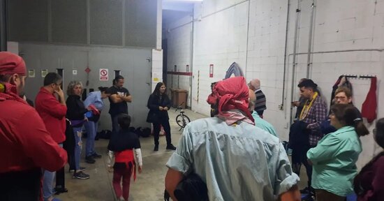 La colla castellera de Sant Adrià assaja els divendres al vespre i la vam anar a visitar per explicar-los què és i com funciona el programa Voluntariat per la llengua.
