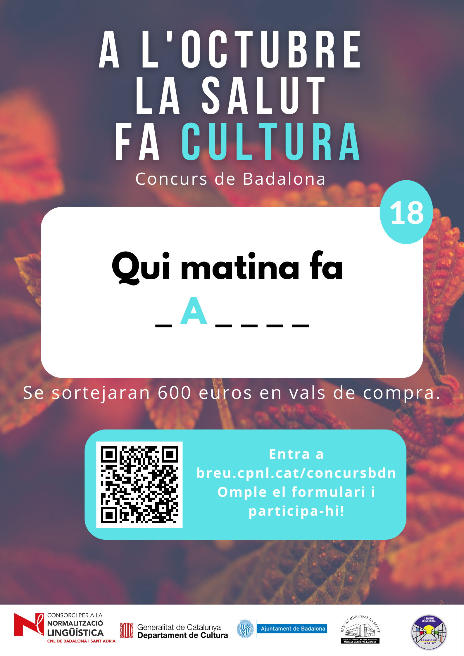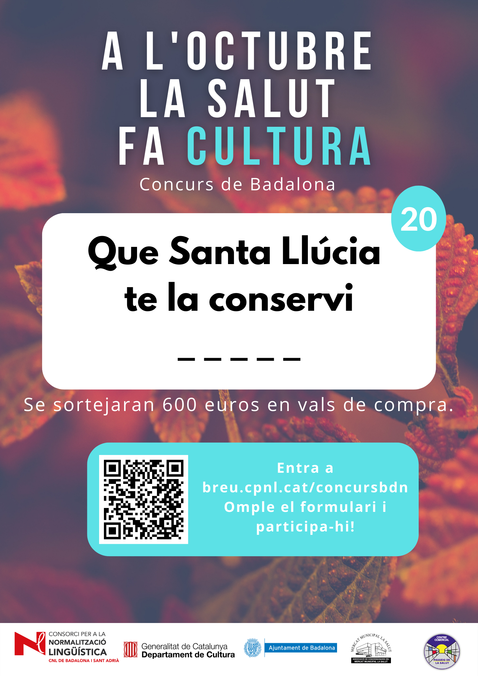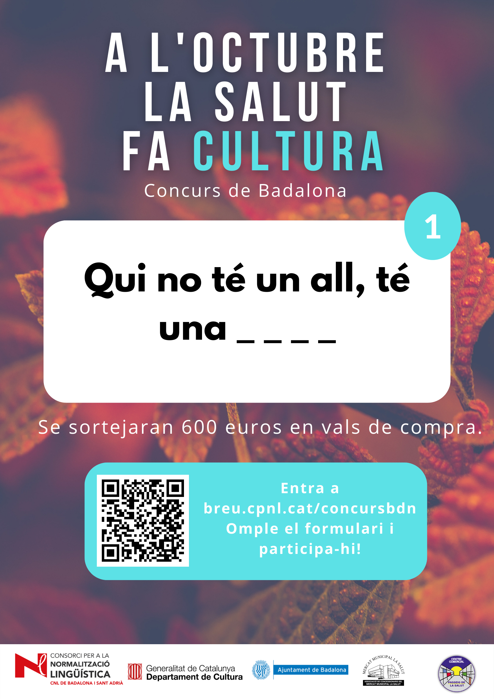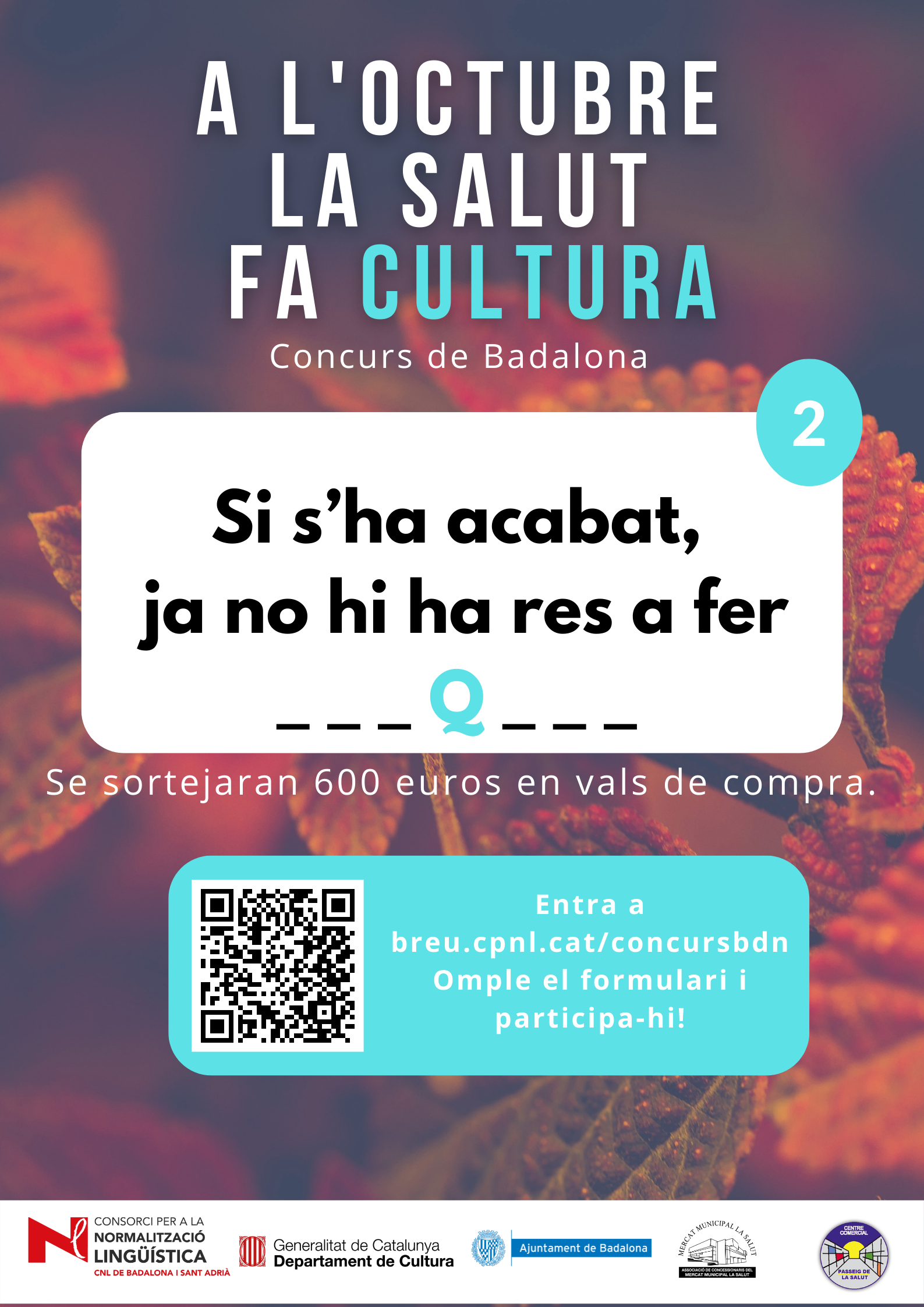 De l’1 al 31 d’octubre, al barri de la Salut de Badalona, s’ha organitzat el concurs "A l'octubre, la Salut fa cultura", per promocionar l'ús del català al comerç de proximitat.