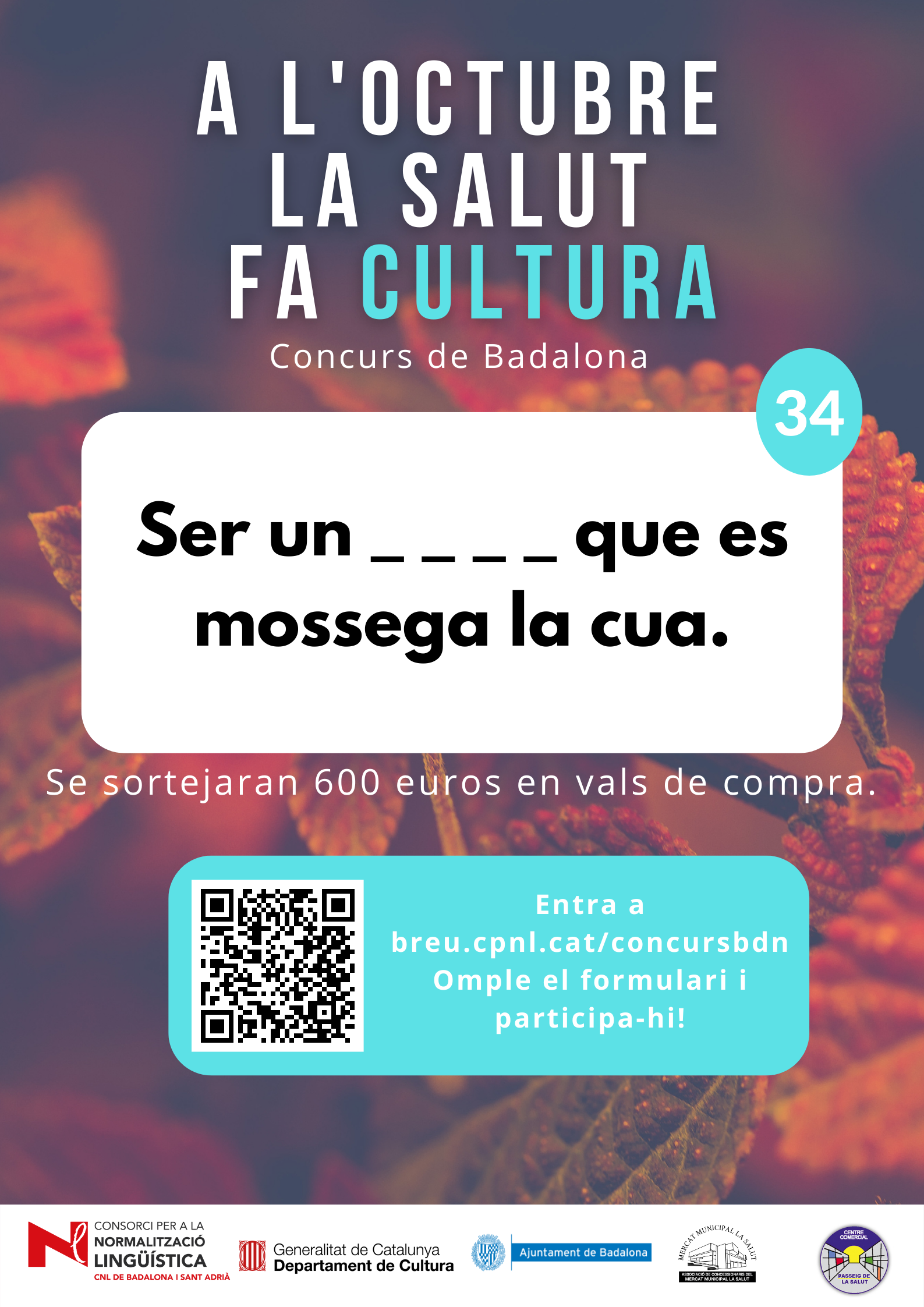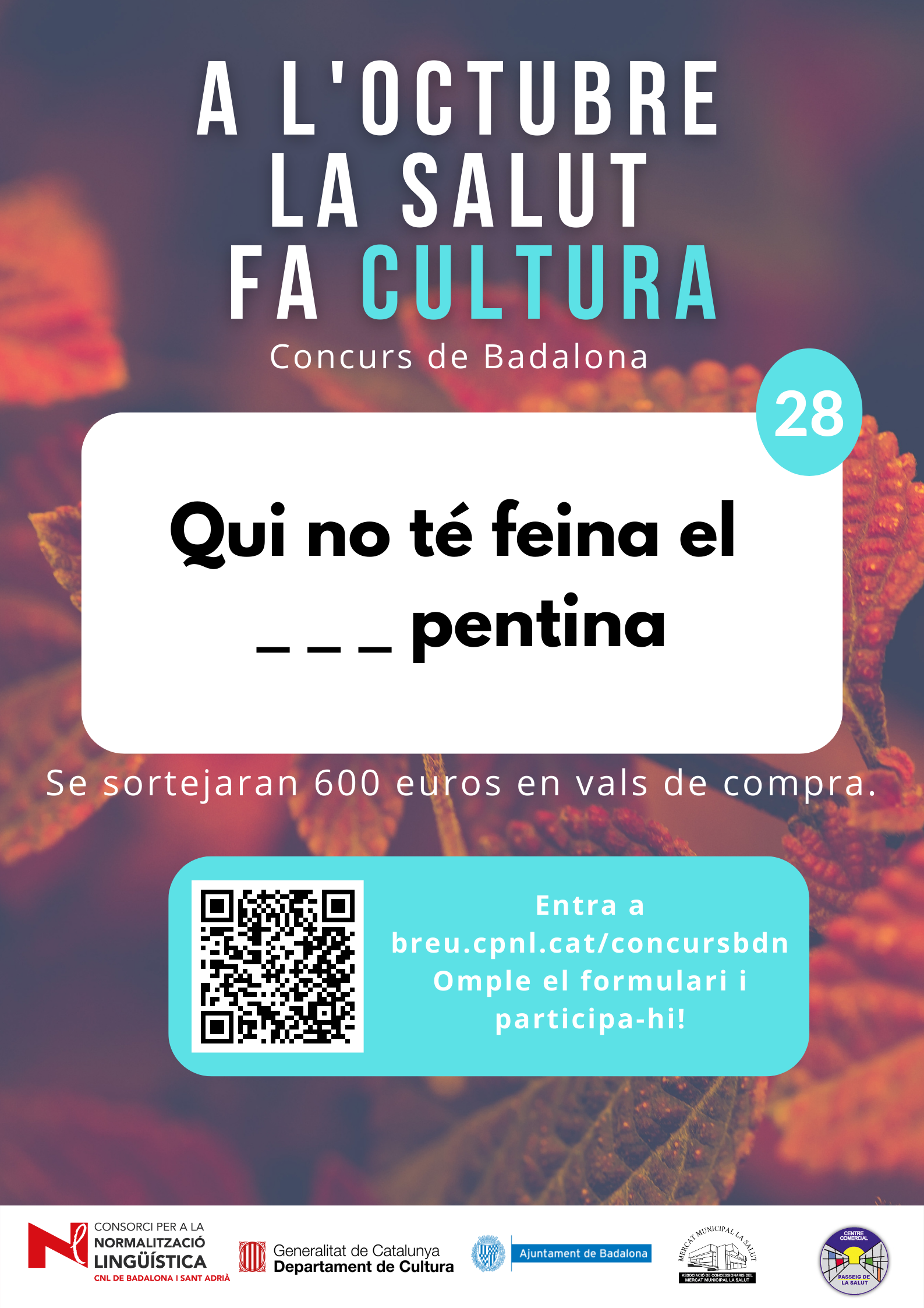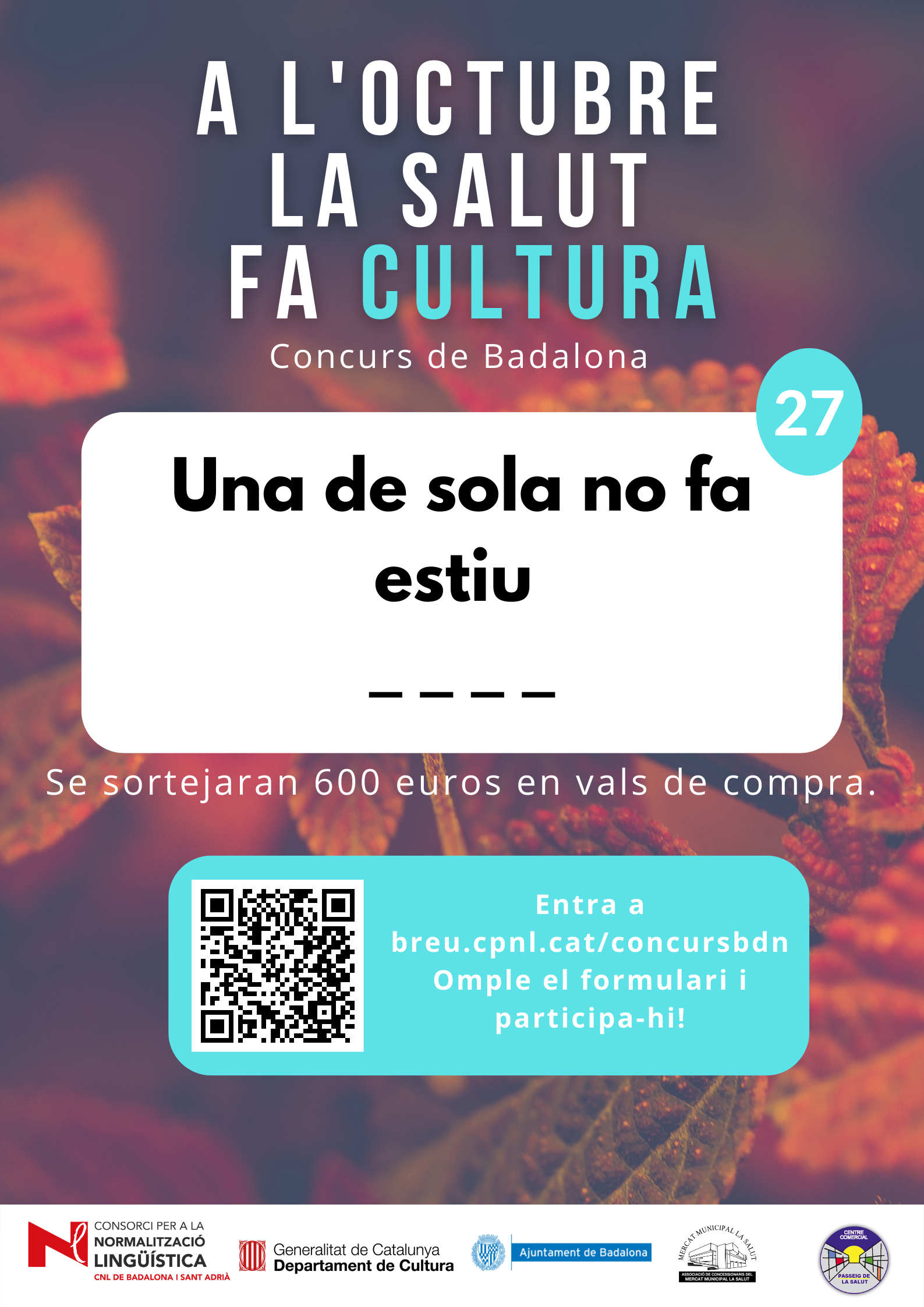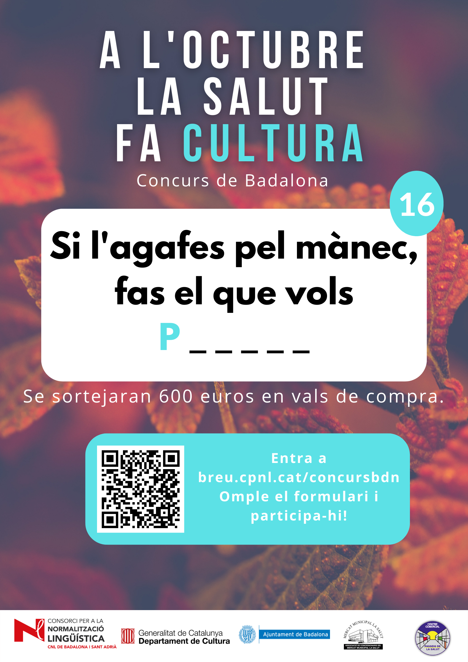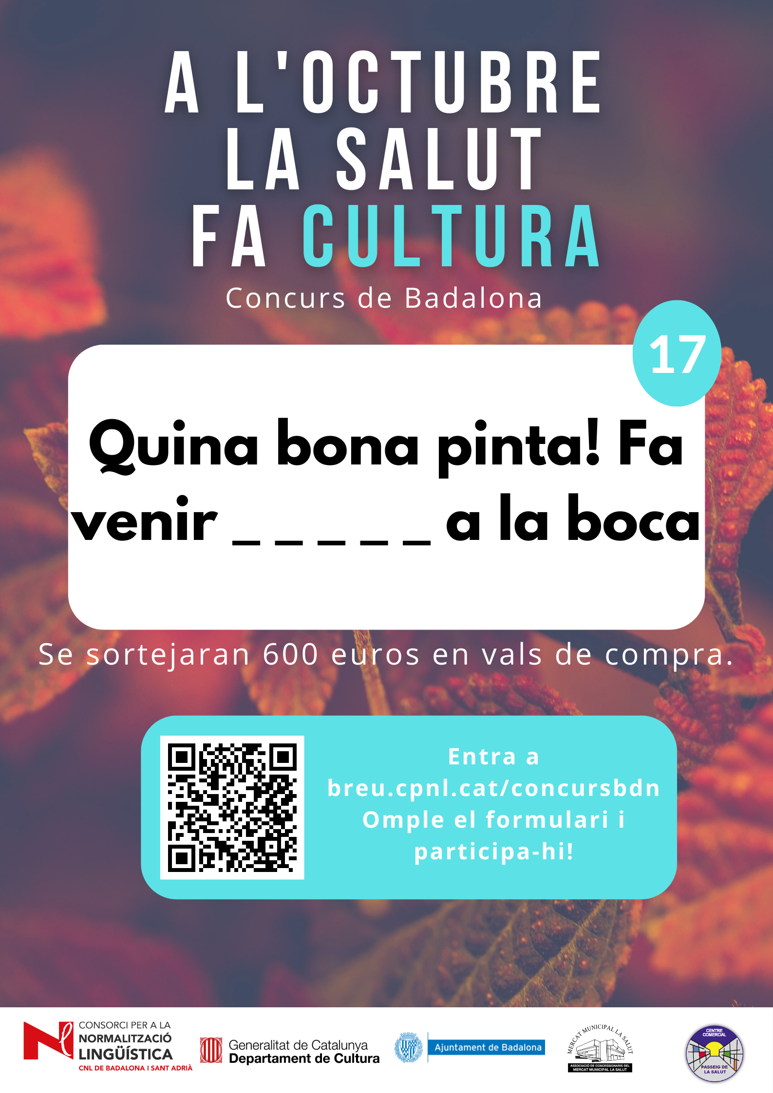 De l’1 al 31 d’octubre, al barri de la Salut de Badalona, s’ha organitzat el concurs "A l'octubre, la Salut fa cultura", per promocionar l'ús del català al comerç de proximitat.