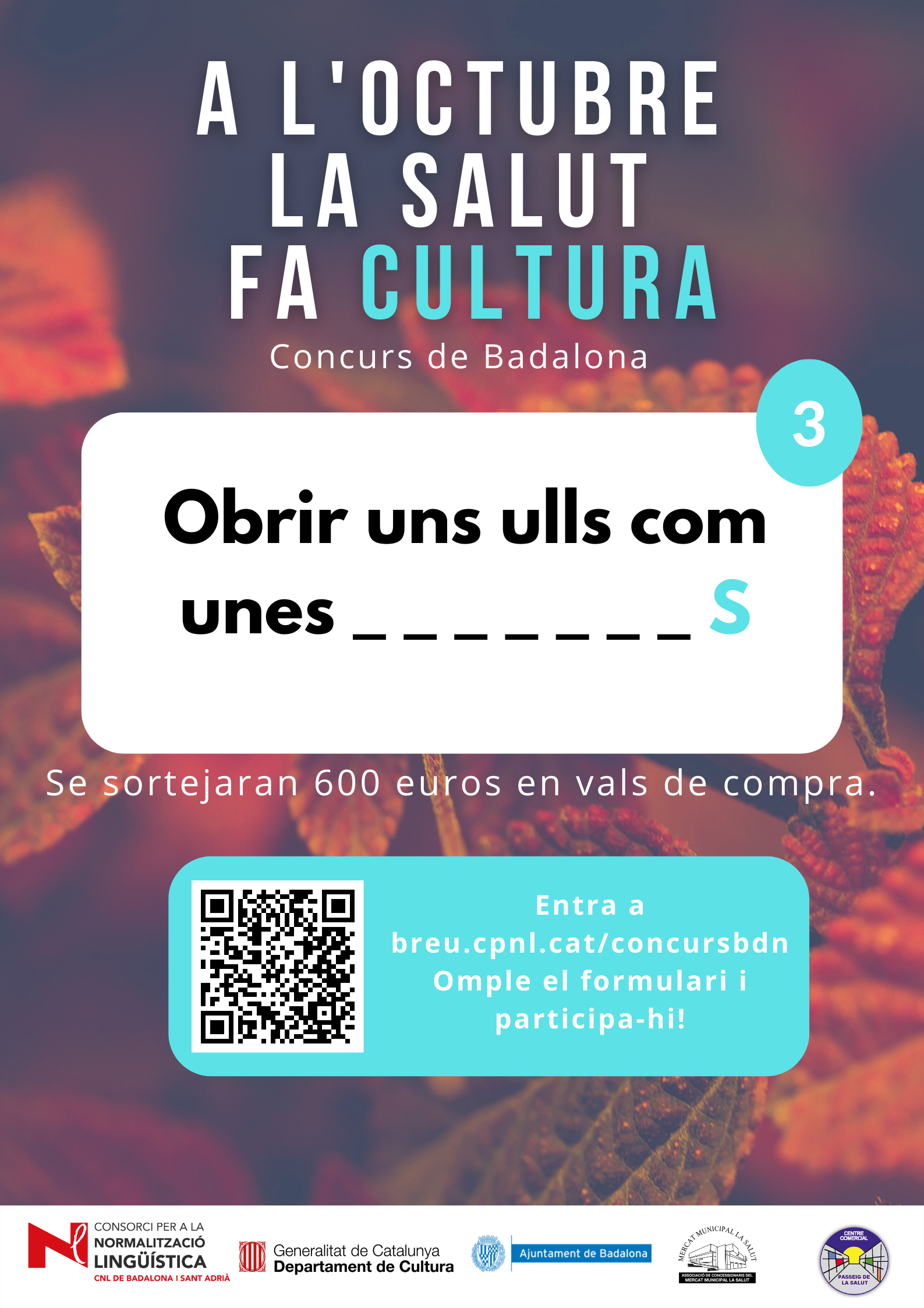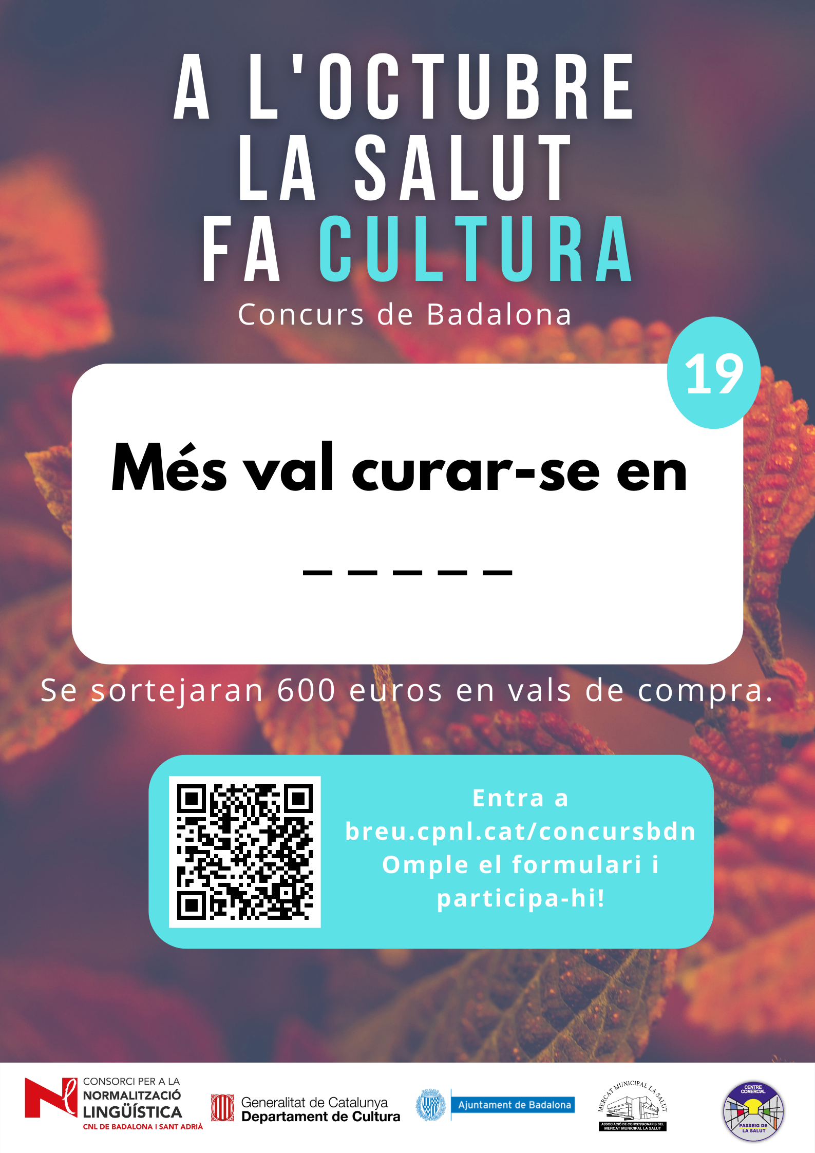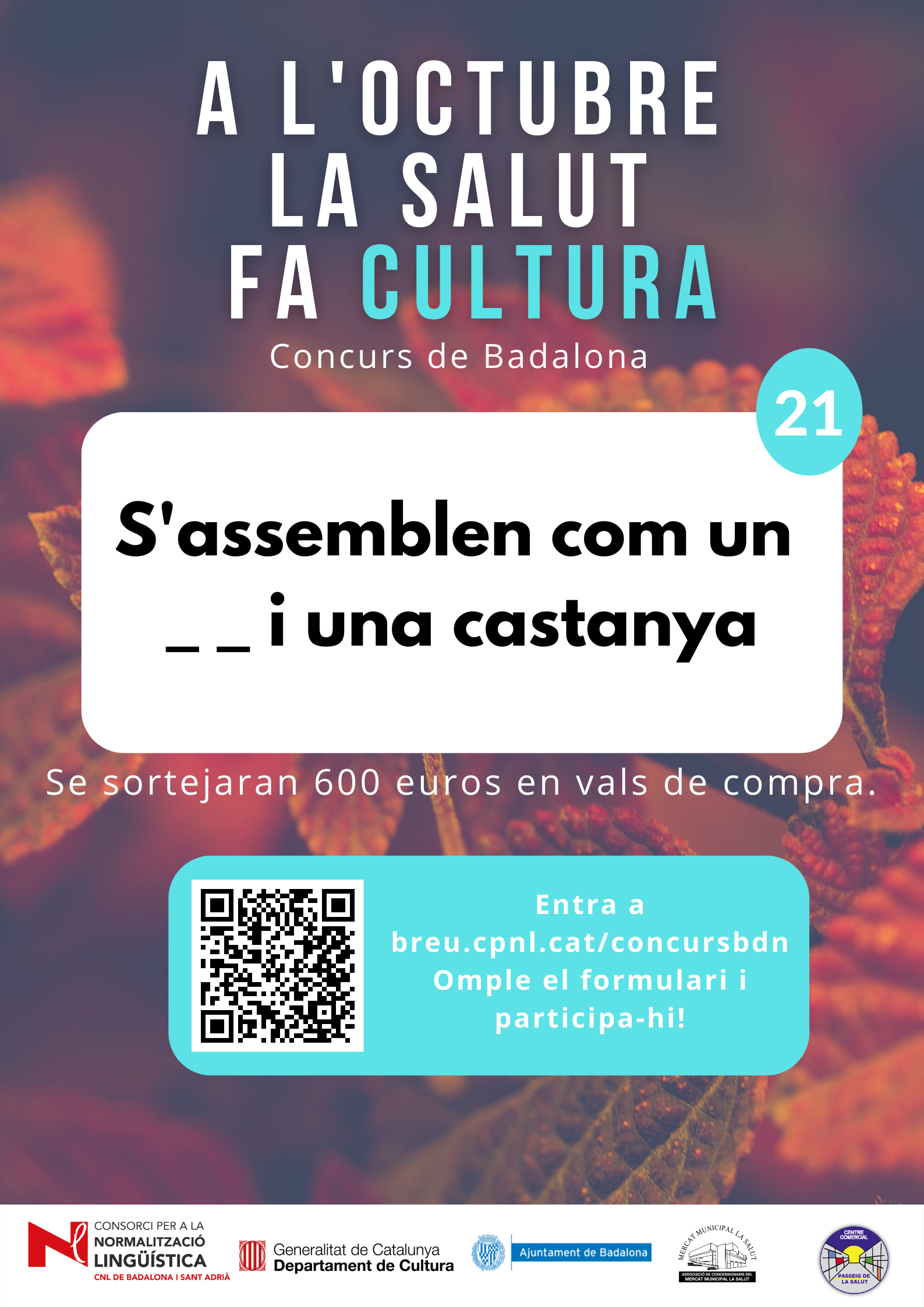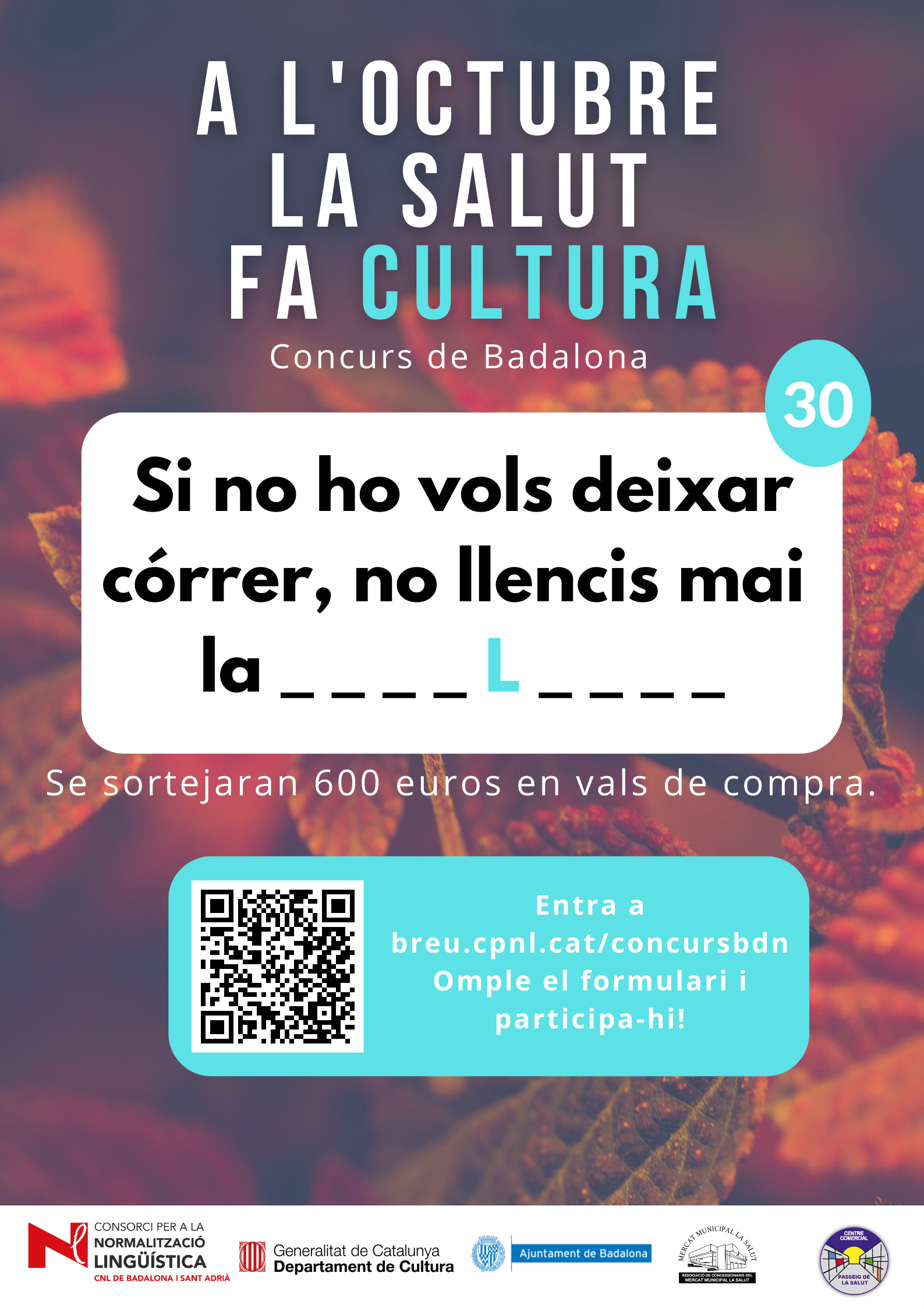 De l’1 al 31 d’octubre, al barri de la Salut de Badalona, s’ha organitzat el concurs "A l'octubre, la Salut fa cultura", per promocionar l'ús del català al comerç de proximitat.