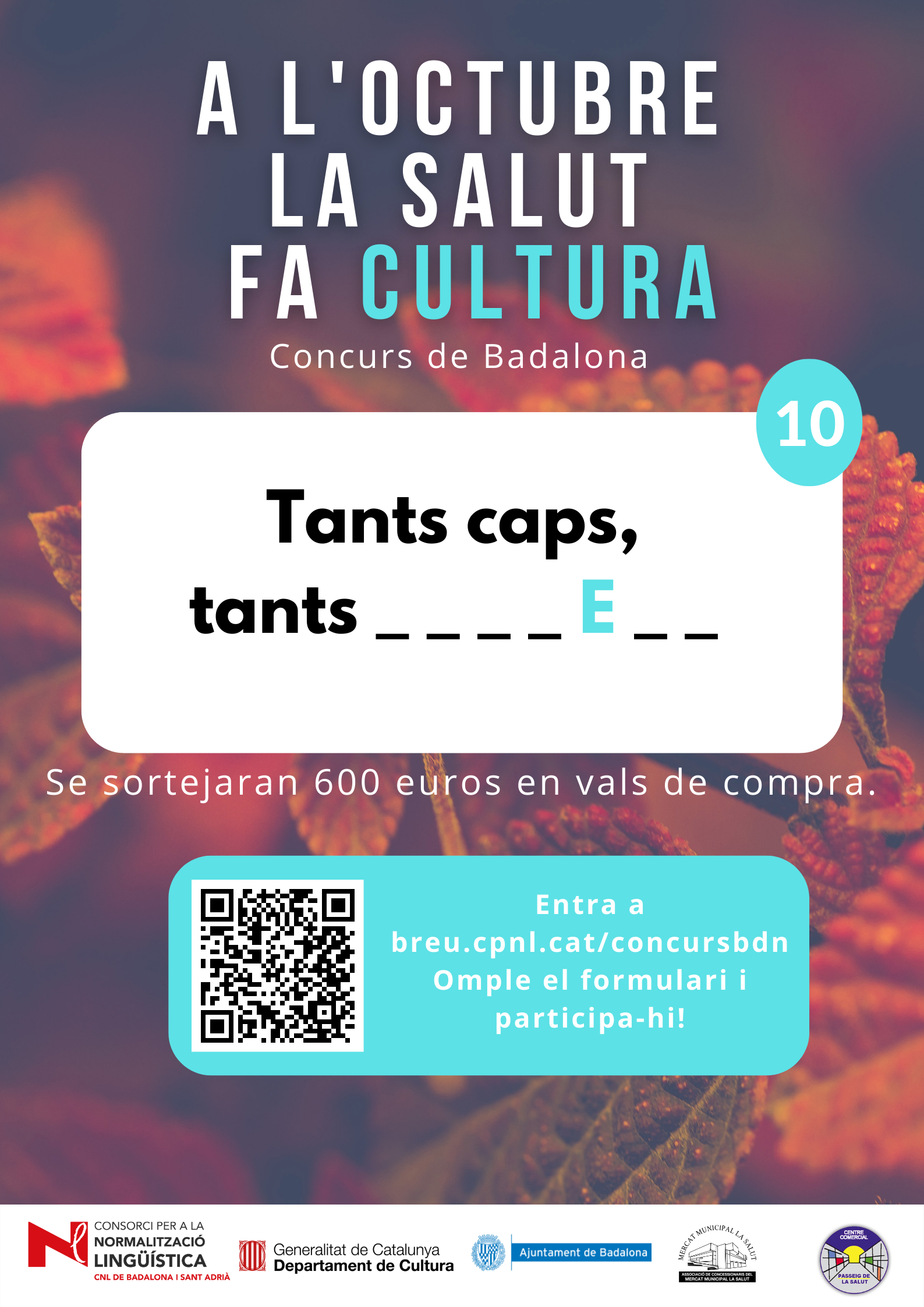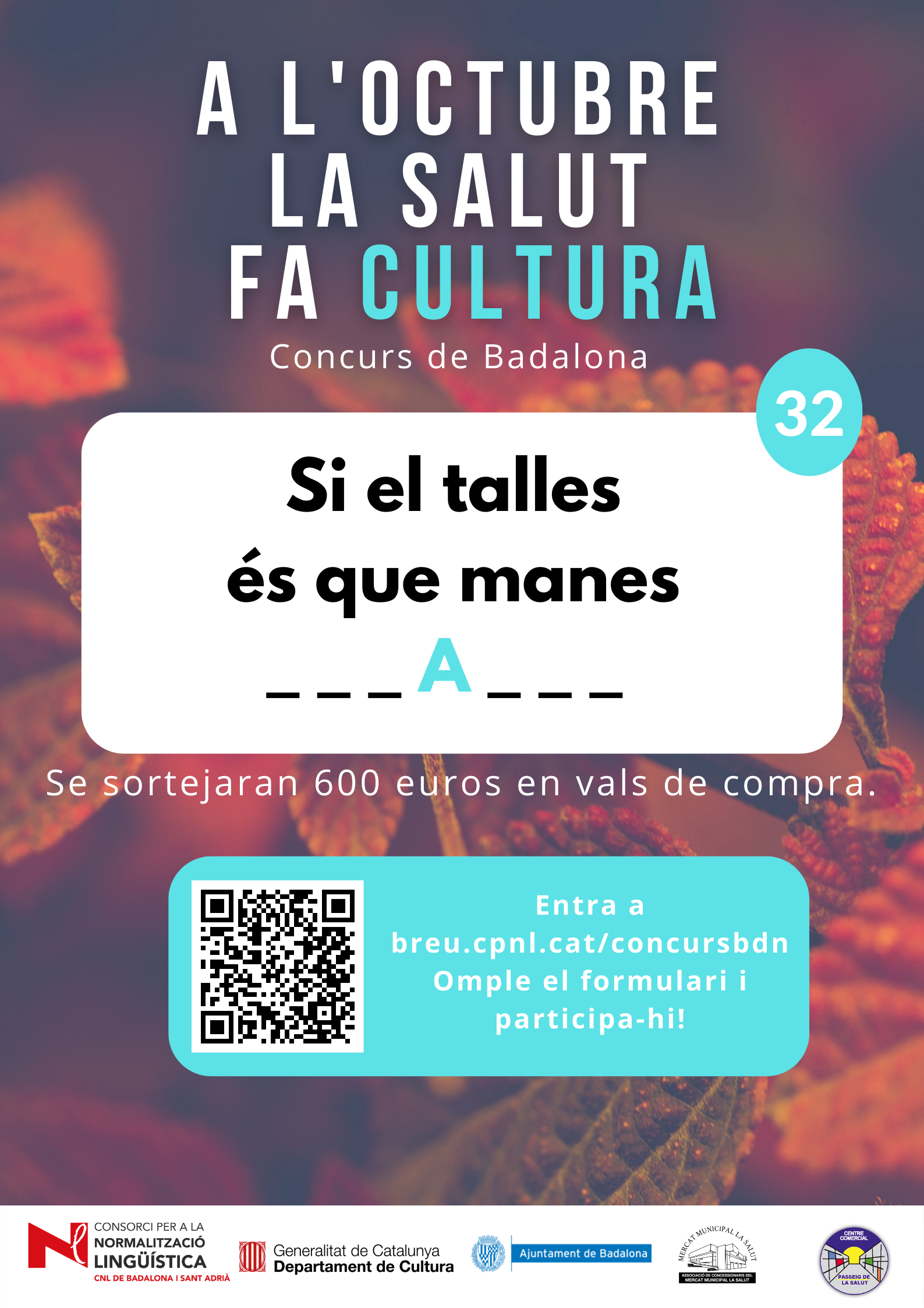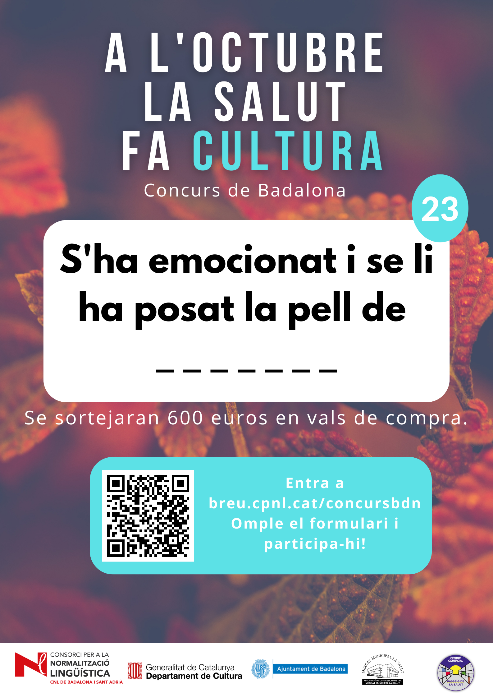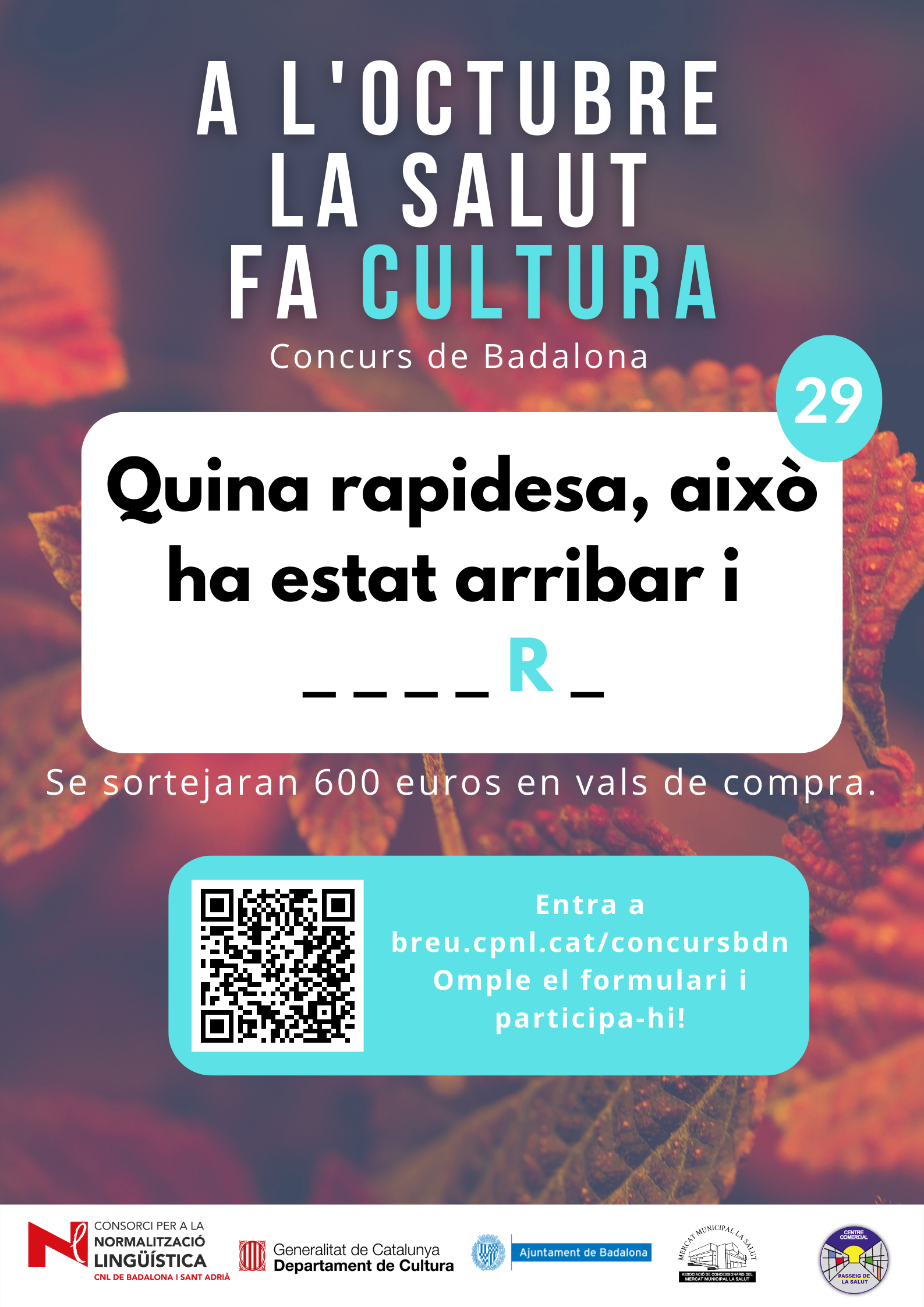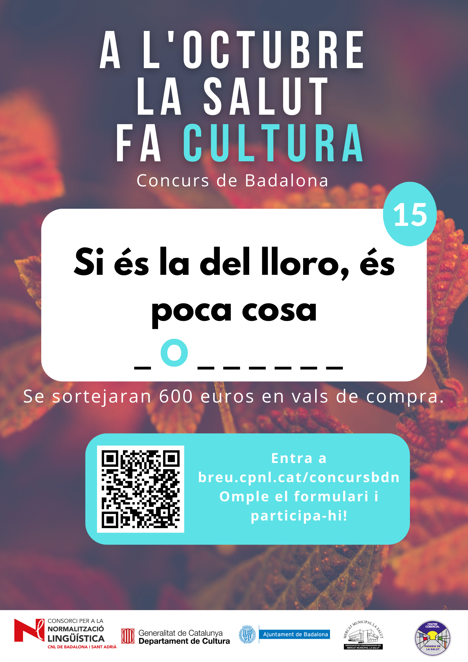 De l’1 al 31 d’octubre, al barri de la Salut de Badalona, s’ha organitzat el concurs "A l'octubre, la Salut fa cultura", per promocionar l'ús del català al comerç de proximitat.
