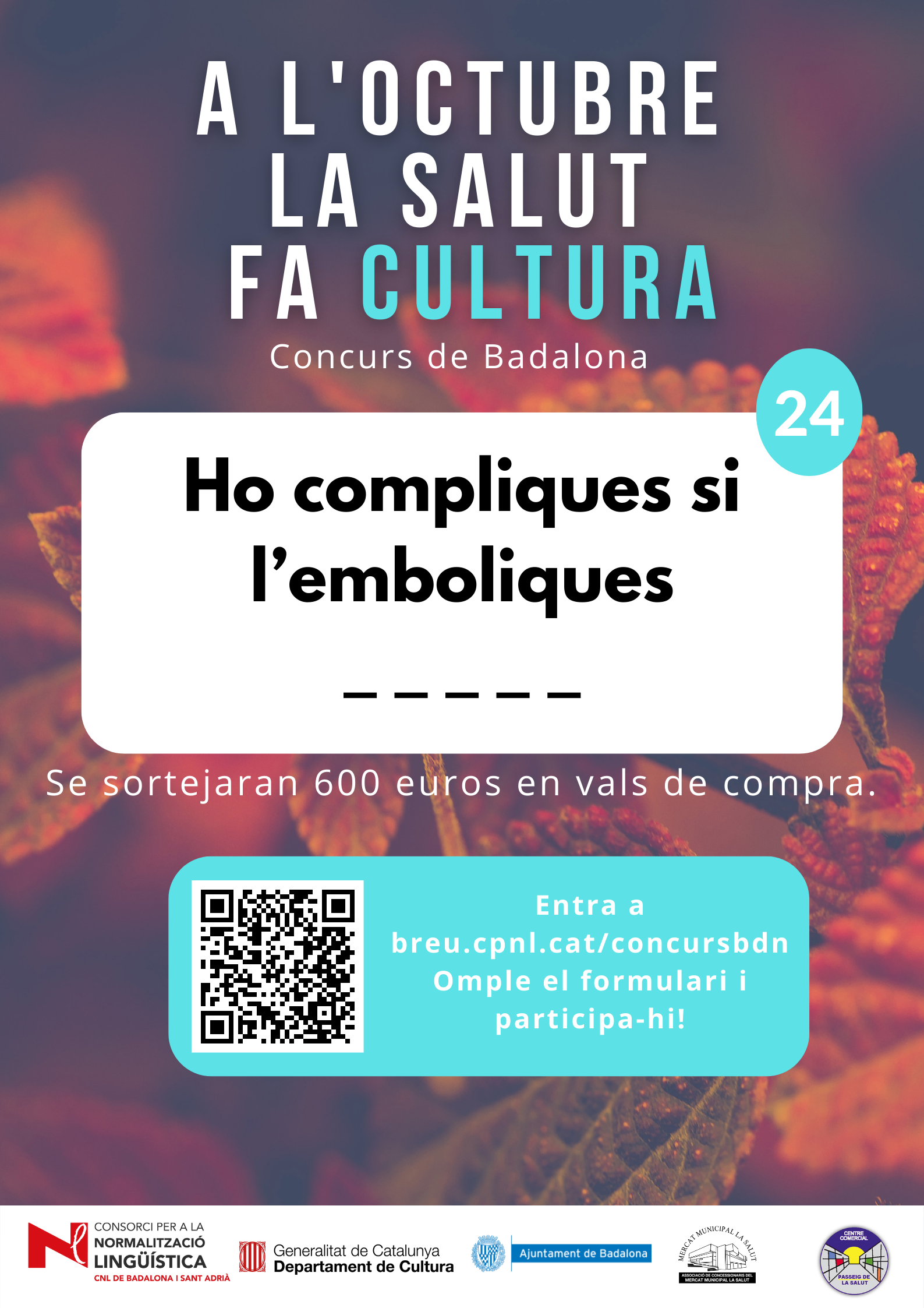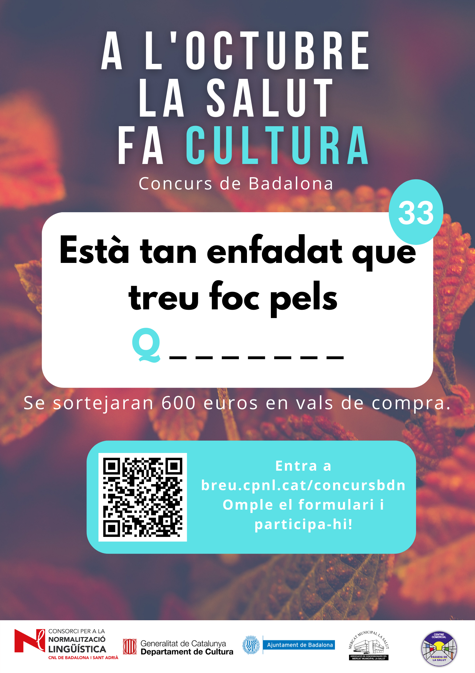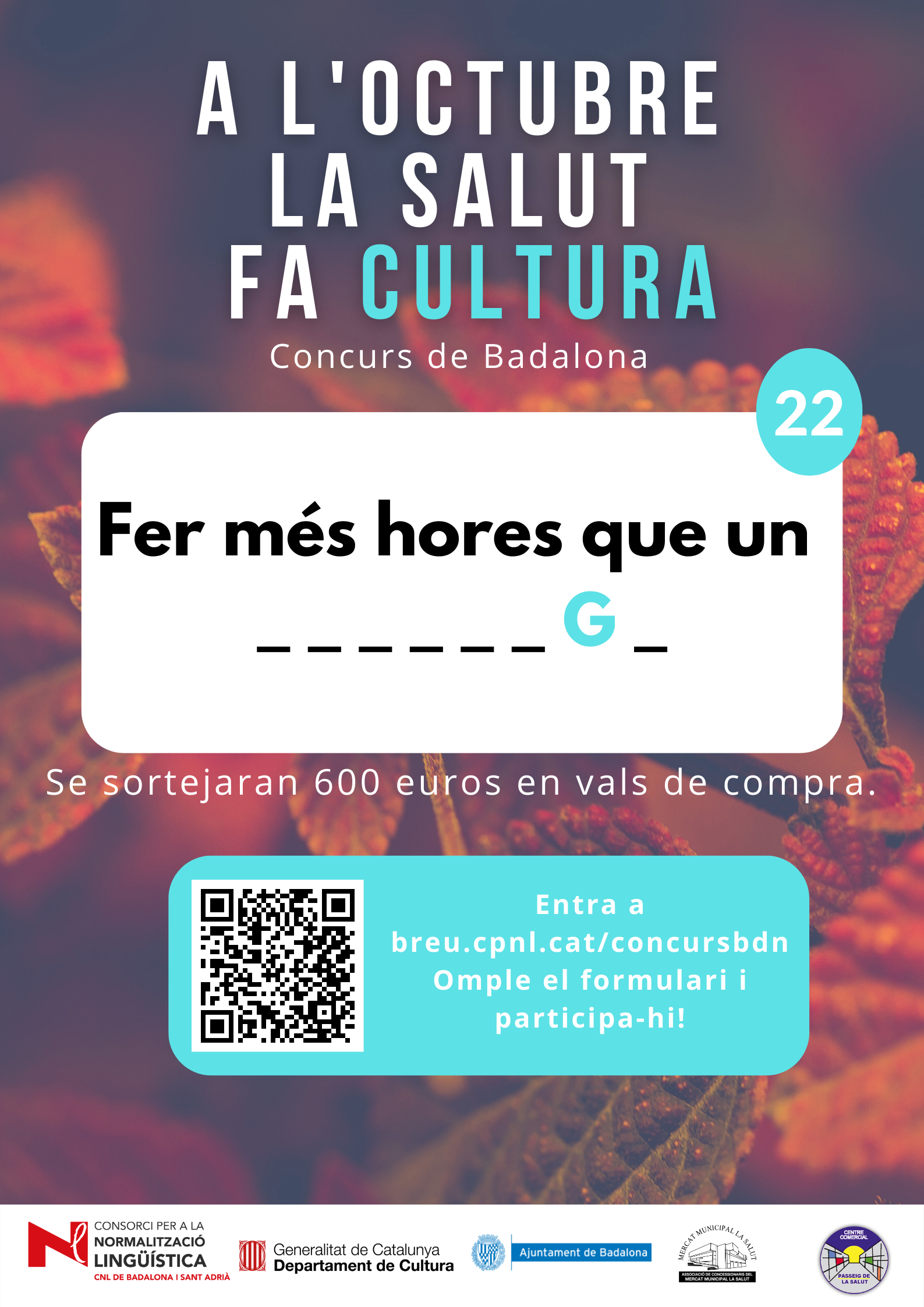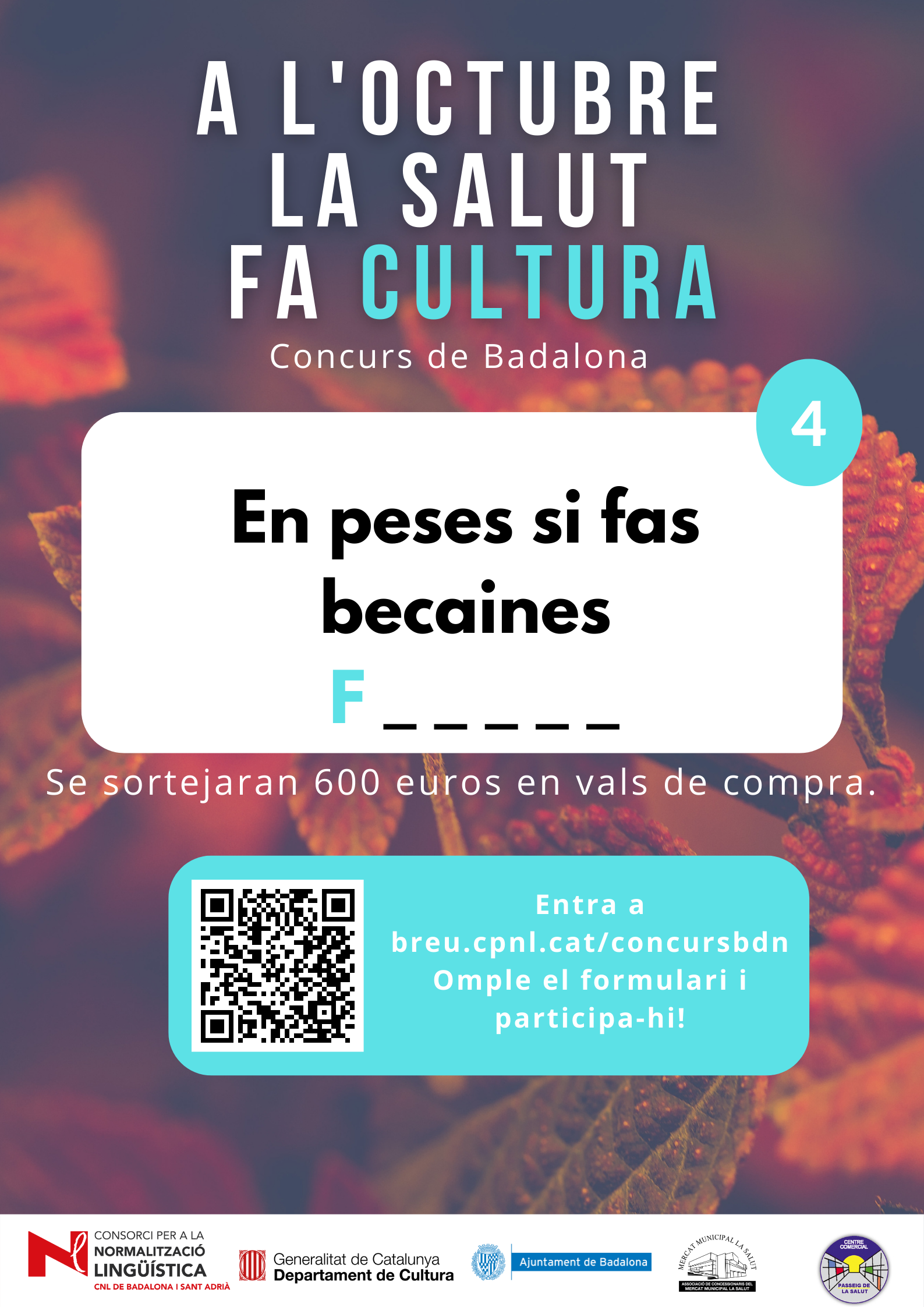 De l’1 al 31 d’octubre, al barri de la Salut de Badalona, s’ha organitzat el concurs "A l'octubre, la Salut fa cultura", per promocionar l'ús del català al comerç de proximitat.