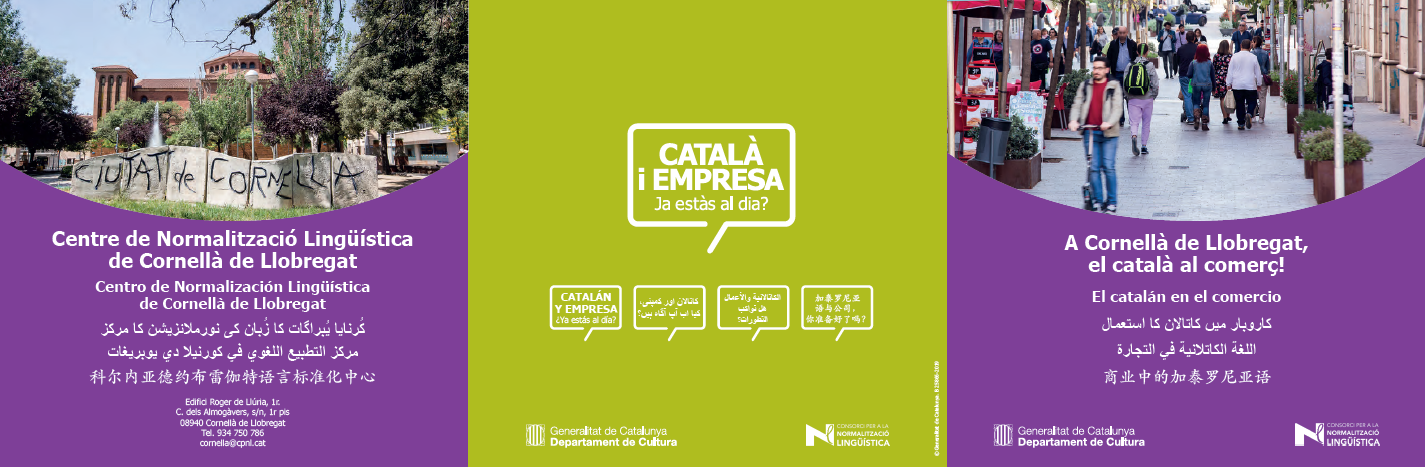 La campanya Català i empresa. Ja estàs al dia? posa a disposició dels comerços i les empreses recursos perquè incloguin o augmentin l'ús del català en la seva activitat: revisions i traduccions lingüístiques, orientació sobre normativa lingüística i selecció de personal, cursos i sessions especialitzats...