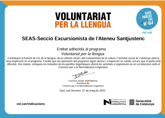 La Secció Excursionista de l'Ateneu Santjustenc (SEAS) s'adhereix al VxL