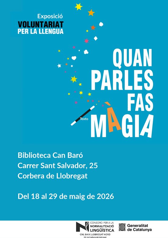 L'exposició 'Quan parles fas màgia' vol apropar el programa Voluntariat per la llengua a la ciutadania i fomentar la creació de parelles lingüístiques. Està adreçada tant a persones que volen practicar el català com a voluntaris o voluntàries per la llengua que puguin dedicar-hi una estona cada setmana.