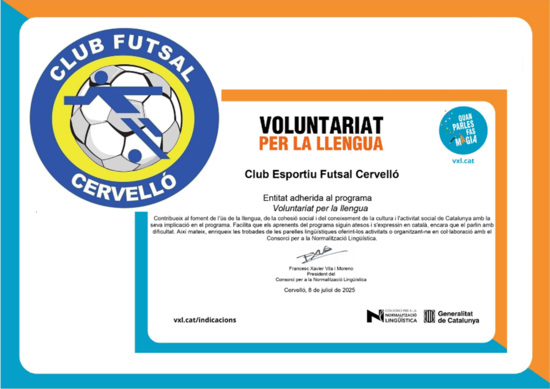 El Club Esportiu Futsal Cervelló s'incorpora com a entitat col·laboradora del Voluntariat per la llengua