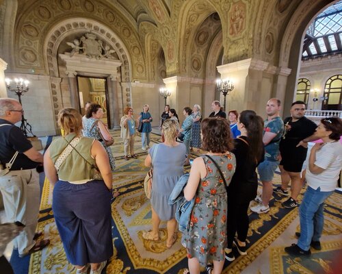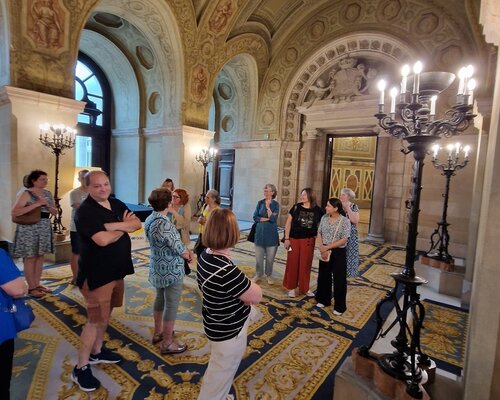 Com funciona el Parlament?, qui s’hi reuneix?, què s’hi fa?, què són les comissions parlamentàries? Són algunes de les preguntes que la visita va permetre de respondre. A més, la xerrada va incloure moltes explicacions sobre la història de l’edifici que l’acull: el Palau del Parlament.