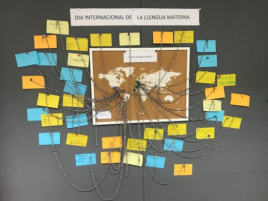 A banda de l'organització de la taula rodona "D'aquí i d'allà. Històries d'acollida lingüística", a la qual van assistir un parell de cursos (Bàsic 3 i Suficiència 2), al Servei Local de Català (SLC) vam dur a terme altres activitats per celebrar el Dia Internacional de la Llengua Materna.