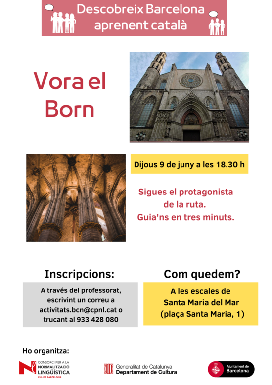 El proper 9 de juny a les 18.30 h organitzem una ruta per la zona del Born, que començarà a Santa Maria del Mar.