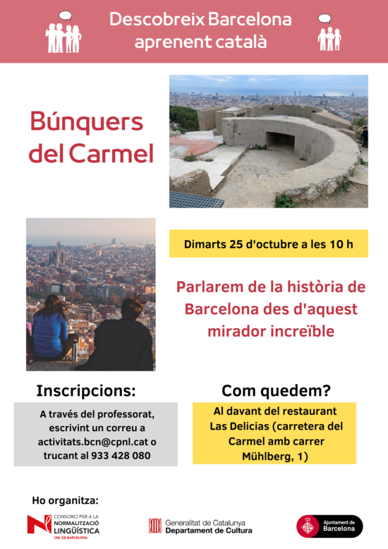 Per inscriure't a l'activitat, cal escriure un missatge a activitats.bcn(ELIMINAR)@cpnl.cat o trucar al 933 428 080.