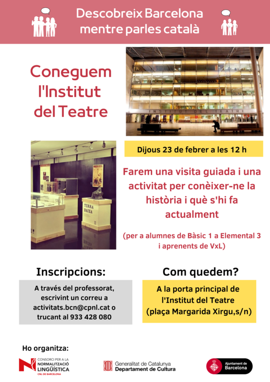 Per inscriure't a l'activitat, cal escriure un missatge a activitats.bcn(ELIMINAR)@cpnl.cat o trucar al 933 428 080.