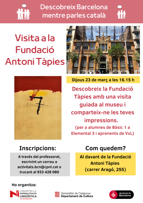 Per inscriure't a l'activitat, cal escriure un missatge a activitats.bcn(ELIMINAR)@cpnl.cat o trucar al 933 428 080.