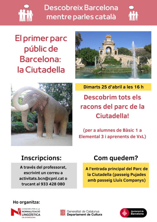 Per inscriure't a l'activitat, cal escriure un missatge a activitats.bcn(ELIMINAR)@cpnl.cat o trucar al 933 428 080.