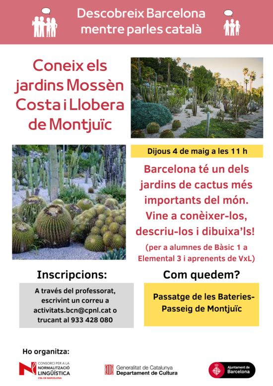 Per inscriure't a l'activitat, cal escriure un missatge a activitats.bcn(ELIMINAR)@cpnl.cat o trucar al 933 428 080.