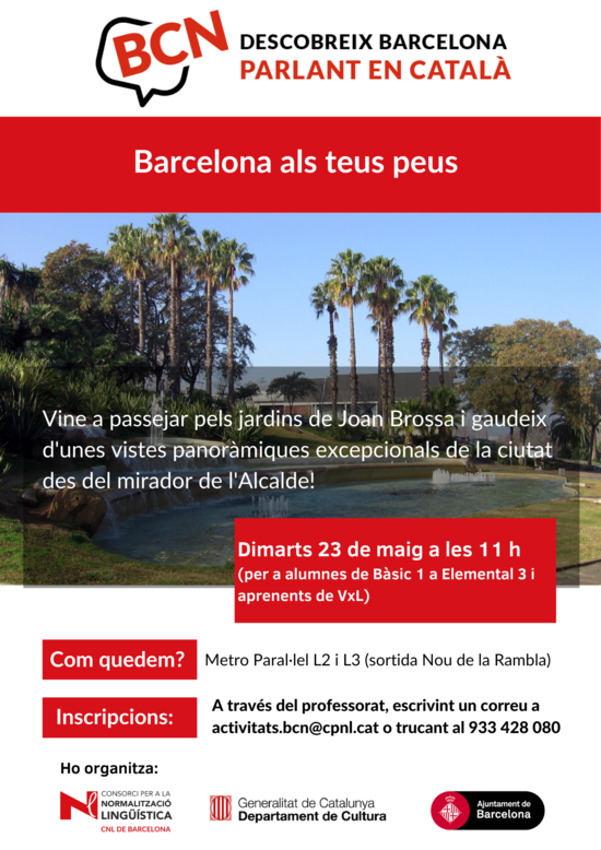 Per inscriure't a l'activitat, cal escriure un missatge a activitats.bcn(ELIMINAR)@cpnl.cat o trucar al 933 428 080.