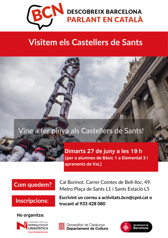 Per inscriure't a l'activitat, cal escriure un missatge a activitats.bcn(ELIMINAR)@cpnl.cat o trucar al 933 428 080.