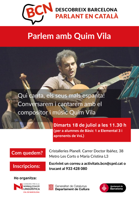 Qui canta, els seus mals espanta! Conversarem i cantarem amb el compositor i músic Quim Vila