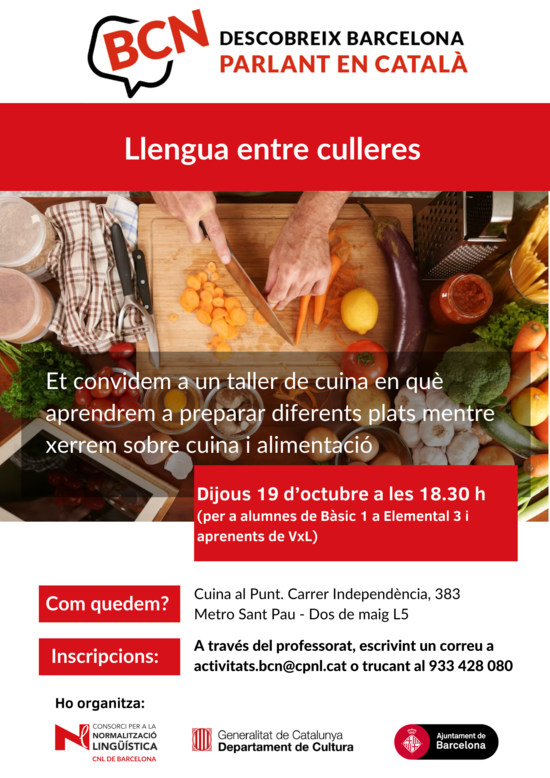 Per inscriure't a l'activitat, cal escriure un missatge a activitats.bcn(ELIMINAR)@cpnl.cat o trucar al 933 428 080.