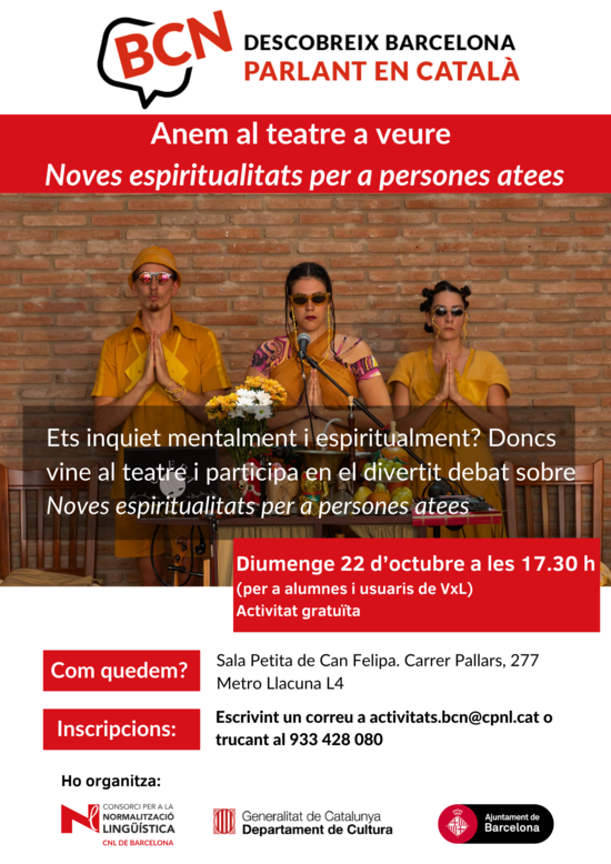 Ets inquiet mentalment i espiritualment? Doncs vine al teatre i participa en el divertit debat sobre Noves espiritualitats per a persones atees.