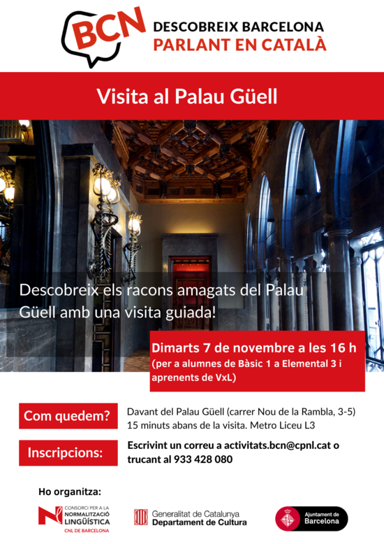 Per inscriure't a l'activitat, cal escriure un missatge a activitats.bcn(ELIMINAR)@cpnl.cat o trucar al 933 428 080.