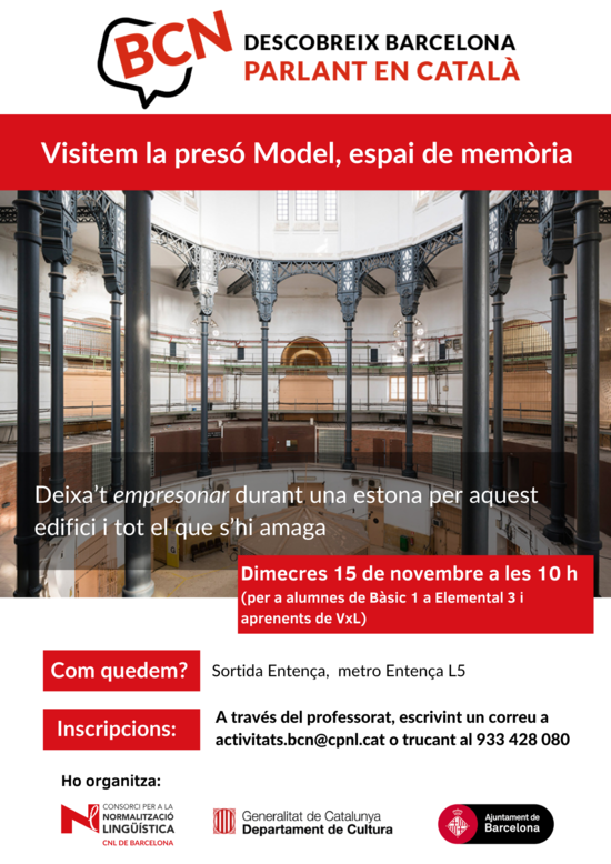 Per inscriure't a l'activitat, cal escriure un missatge a activitats.bcn(ELIMINAR)@cpnl.cat o trucar al 933 428 080.