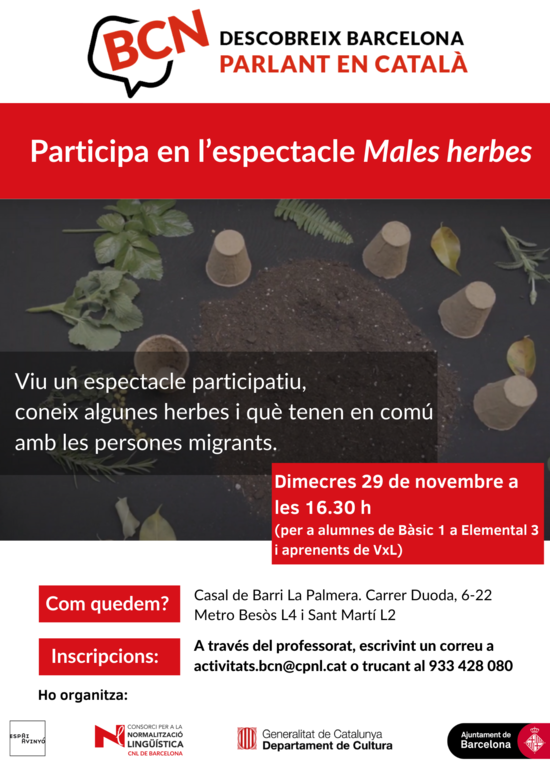 Per inscriure't a l'activitat, cal escriure un missatge a activitats.bcn(ELIMINAR)@cpnl.cat o trucar al 933 428 080.