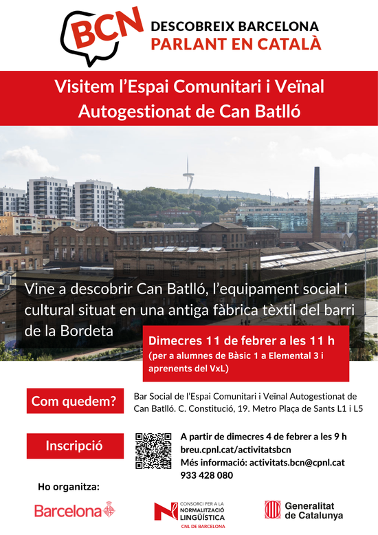 Per a qualsevol dubte, podeu escriure un missatge a activitats.bcn(ELIMINAR)@cpnl.cat o trucar al 933 428 080.