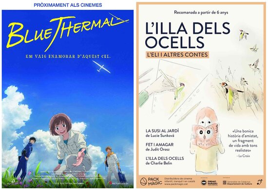 El proper divendres, 17 de març, s'estrenen dues pel·lícules d'animació en català: 'Blue Thermal' en versió doblada i 'L'illa dels ocells. L'Eli i altres contes' doblada i subtitulada en català