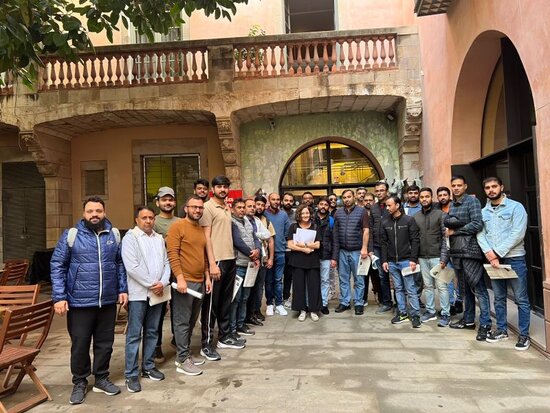Els alumnes d'un grup de nivell Elemental 1 que fan classes al districte de les Corts, van assistir a un nou taller dels Castellers de Sants
