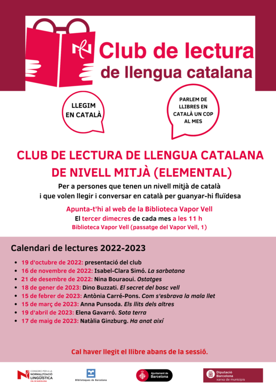 La Biblioteca Vapor Vell tornarà a acollir un club de lectura en llengua catalana de nivell mitjà