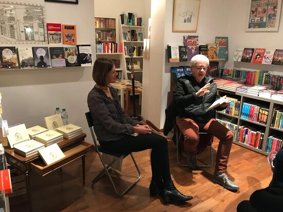 Trobada amb Maria Josep Rosanas i Màrius Serra a la Llibreria A Peu de Pàgina de Sarrià
