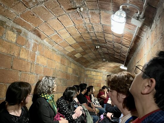 Aquesta setmana passada uns alumnes de diferents nivells dels cursos de la Delegació d’Horta-Guinardó van anar amb la professora Eugènia Godayol a visitar el refugi antiaeri de la plaça del Diamant