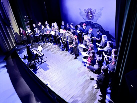 Els cantaires van actuar amb dues altres corals de l'Escola de Músics i JPC