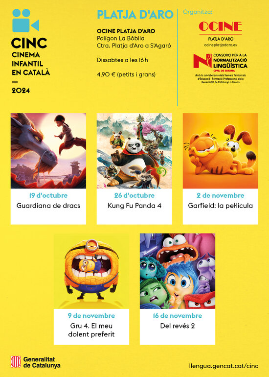 El CINC, el cicle de cinema que té per objectiu potenciar l'oferta de pel·lícules infantils en català, torna a Platja d'Aro amb 5 pel·lícules imperdibles.