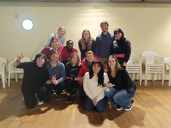 Un membre del grup de teatre El Mirall condueix el Taller de Teatre adreçat a alumnes i parelles lingüístiques de l’Oficina de Català de Blanes. A través de tècniques d’expressió corporal, els alumnes guanyen confiança per expressar-se en català i reforcen els continguts apresos a l’aula. Aquest taller es duu a terme cada divendres del mes de febrer.
