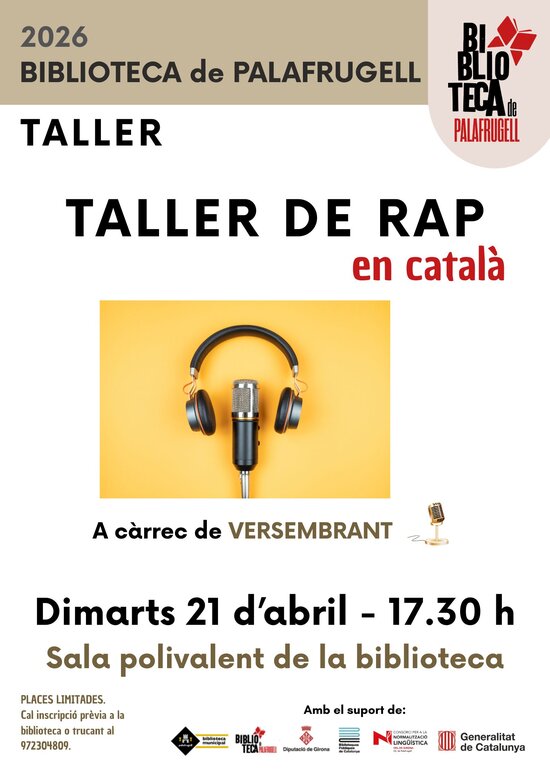 La biblioteca de Palafrugell organitza, el dia 21 d'abril dins dels actes de Sant Jordi, un taller de rap en català, adreçat especialment als alumnes dels cursos de Bàsic 3 i Elemental 1. L'activitat va a càrrec del grup Versembrant.
