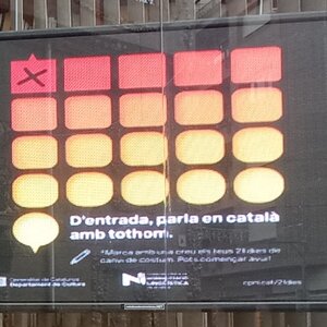 Del 6 de novembre al 3 de desembre la campanya "21 dies. D'entrada en català" emplena el poble de cartells, postals i tòtems per animar tothom a reflexionar sobre l'ús que fem de la llengua quan ens adrecem a un desconegut o a una persona que d'entrada no parla català (tot i que potser el sap o l'entén perfectament).