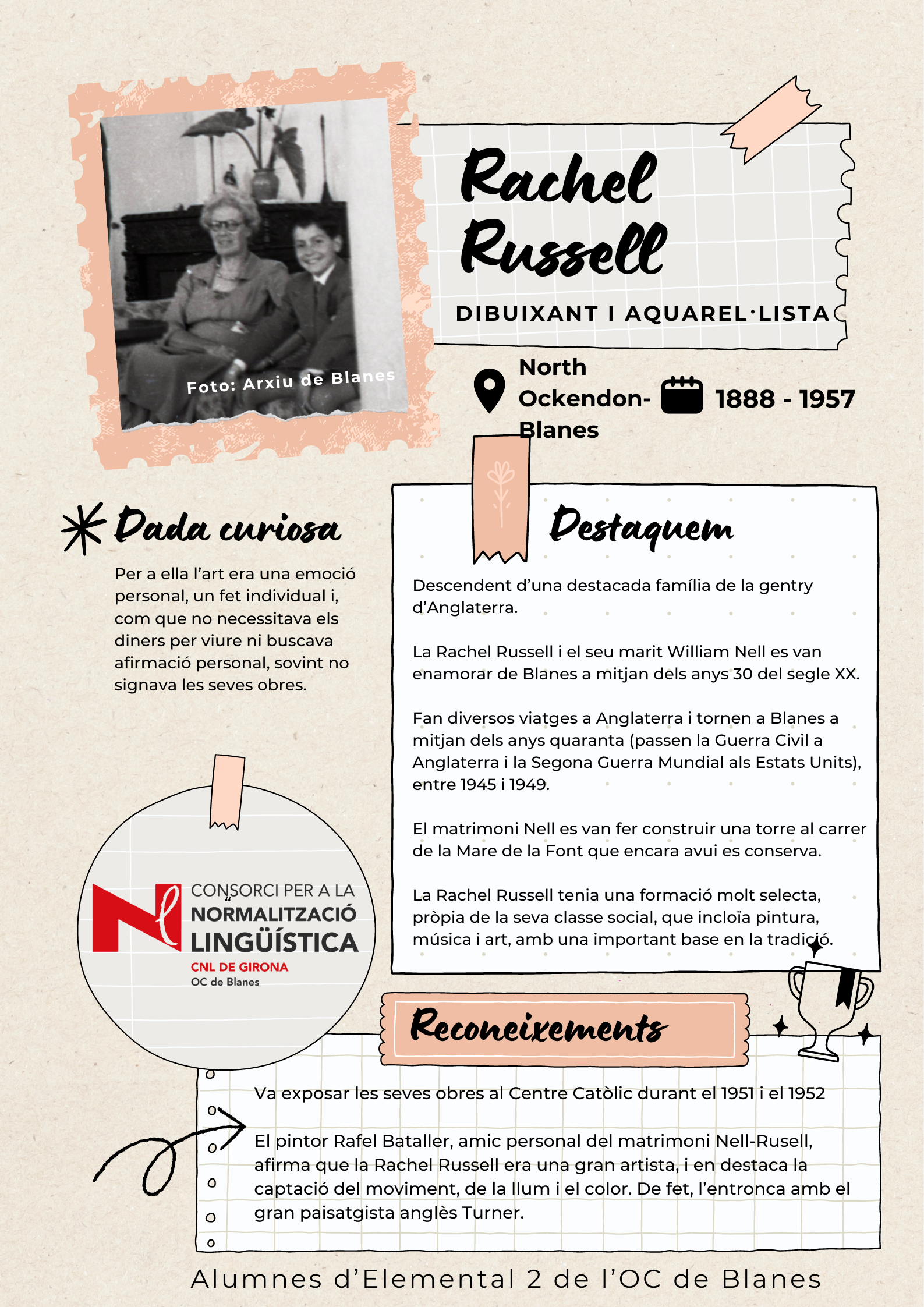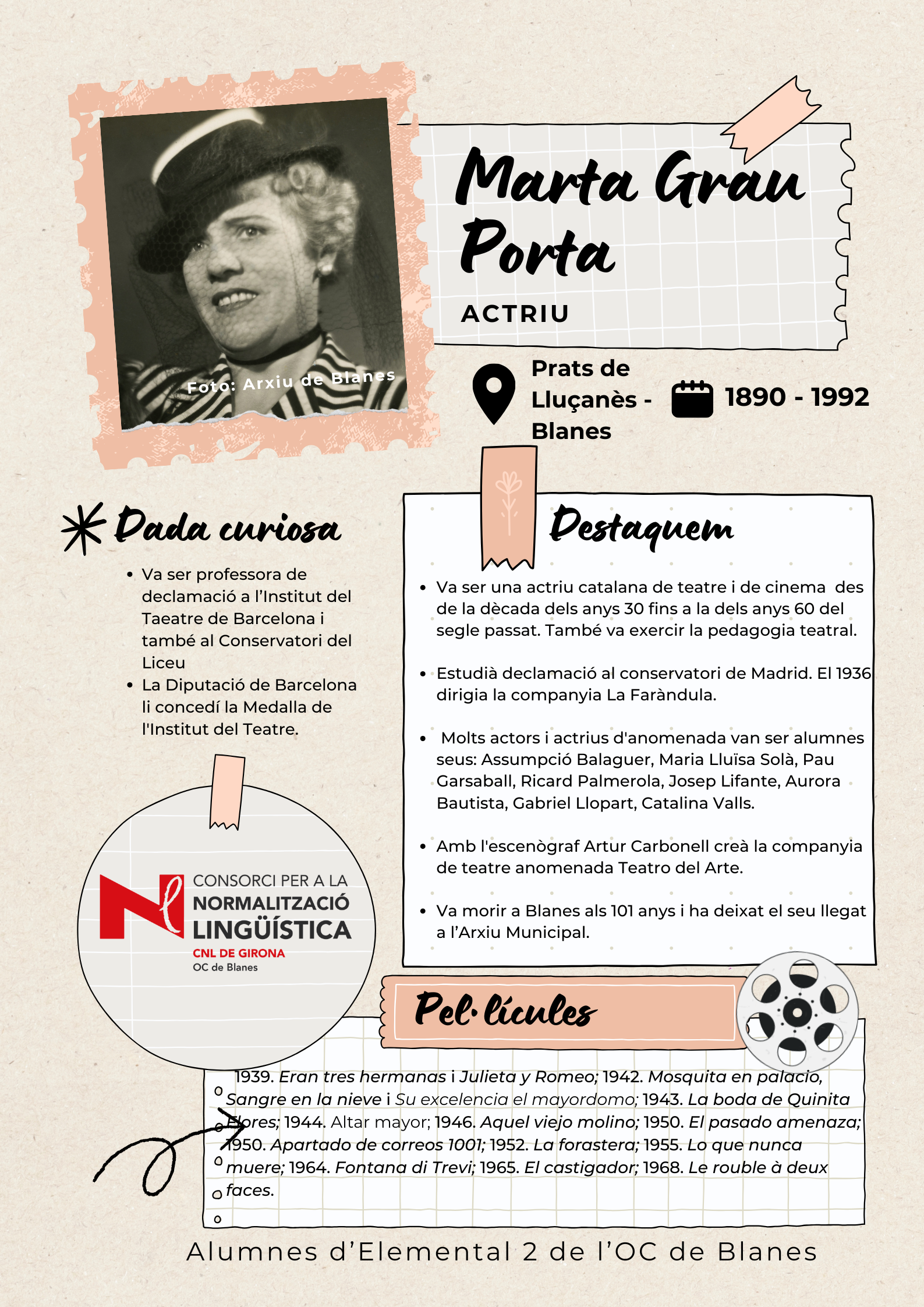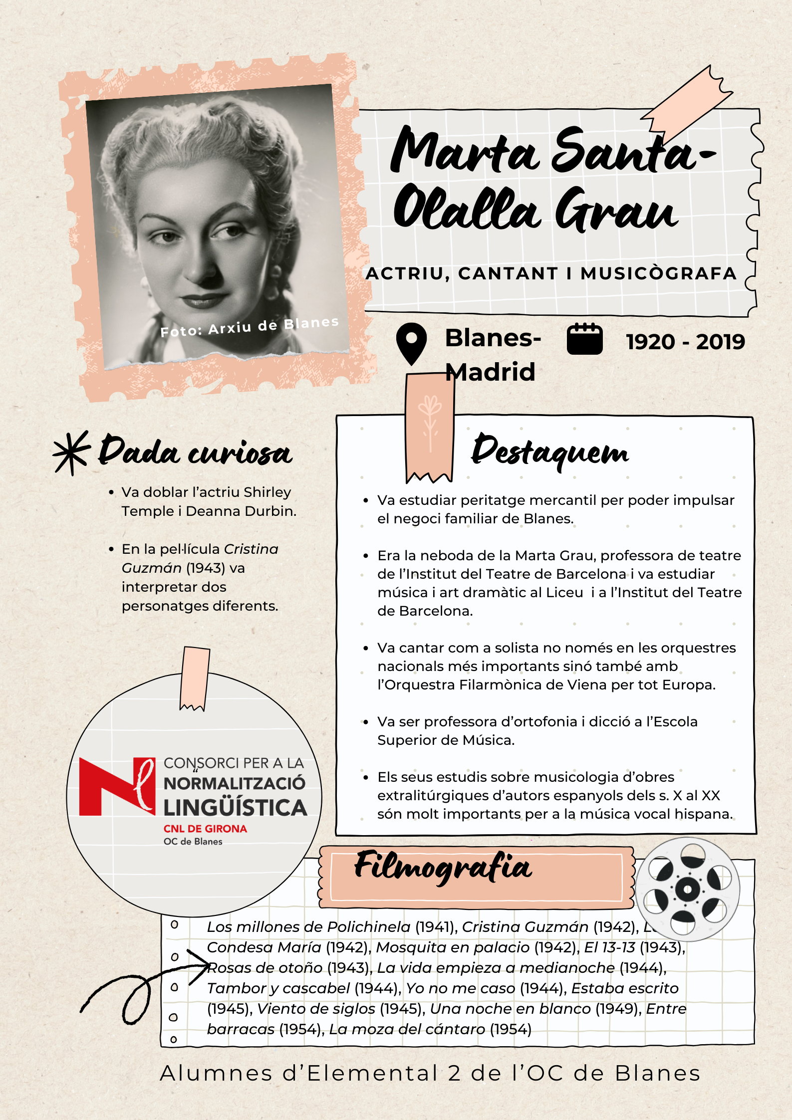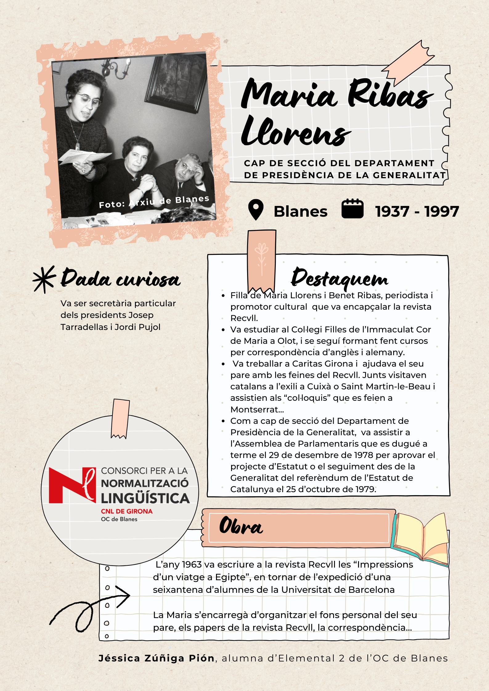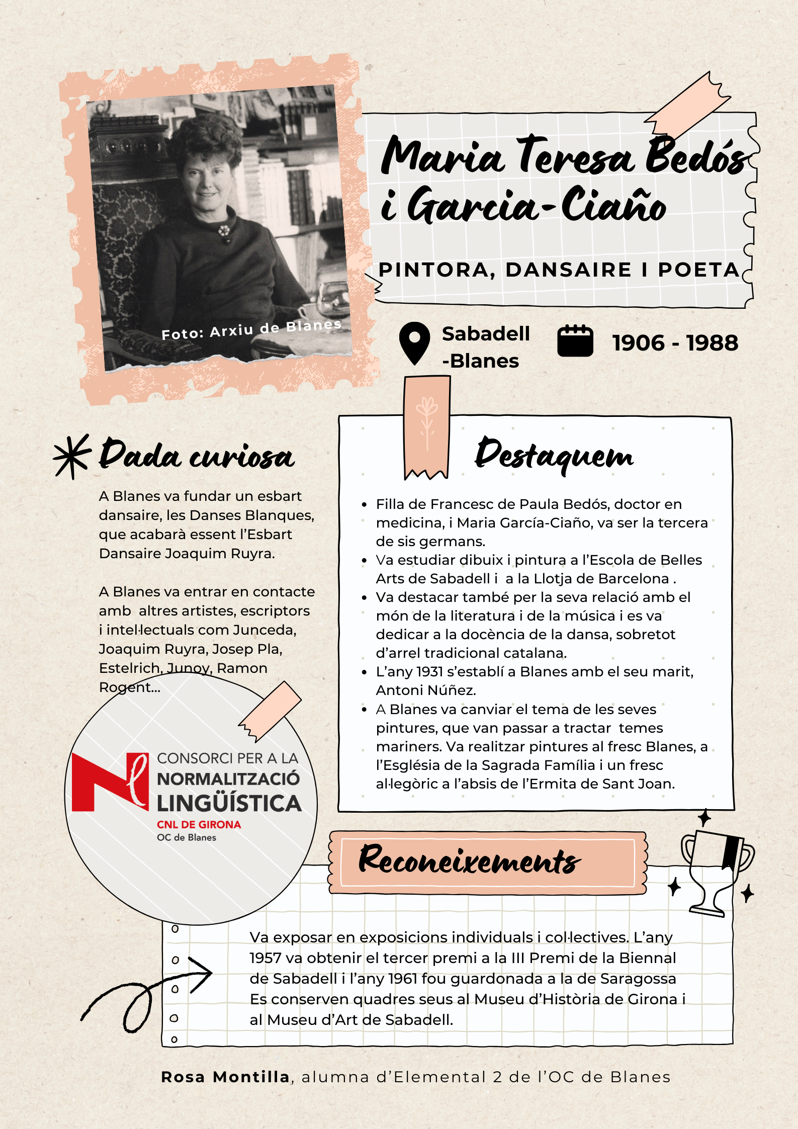 Amb l'objectiu de visibilitzar les dones de Blanes, els alumnes de català del nivell Elemental 2 de Blanes han elaborat uns pòsters per divulgar la tasca de 17 dones del municipi de totes les èpoques, des de la vescomtessa Violant de Prades (s. XV), que va fer construir la font gòtica, fins a pintores, actrius, escriptores, músiques i polítiques.