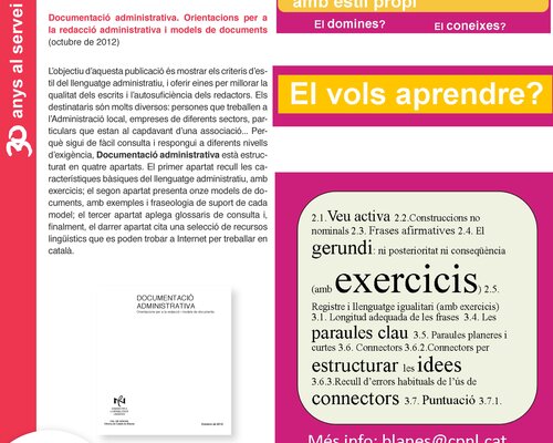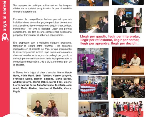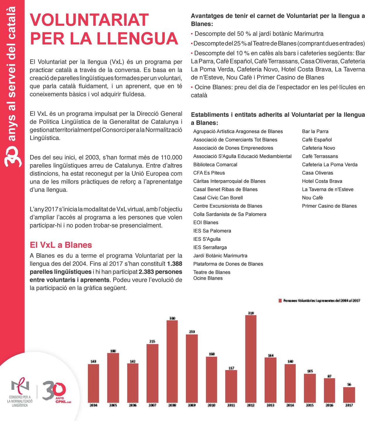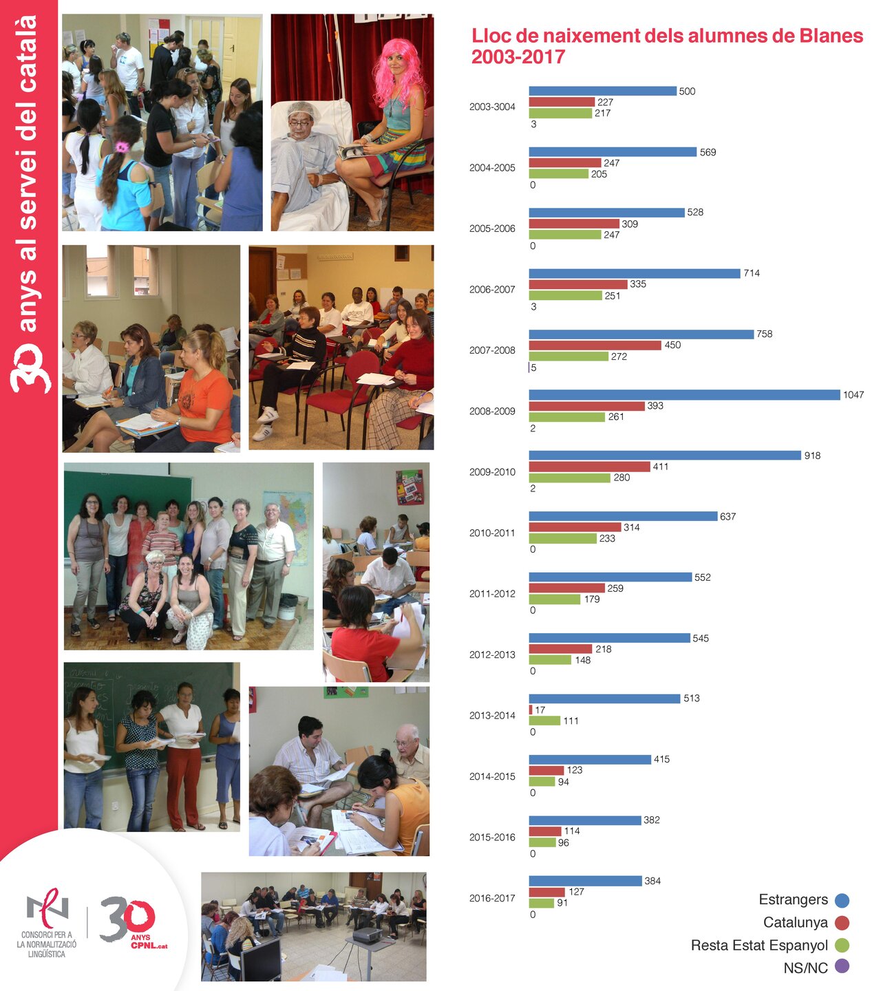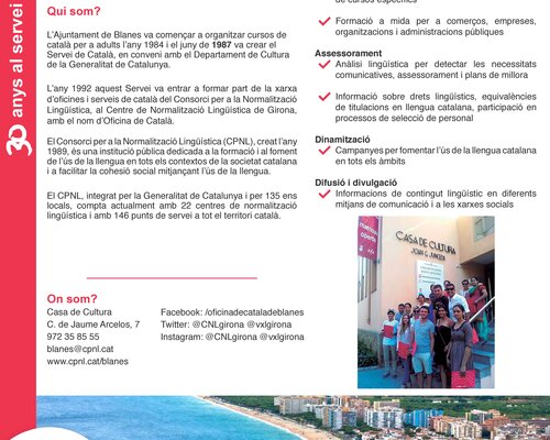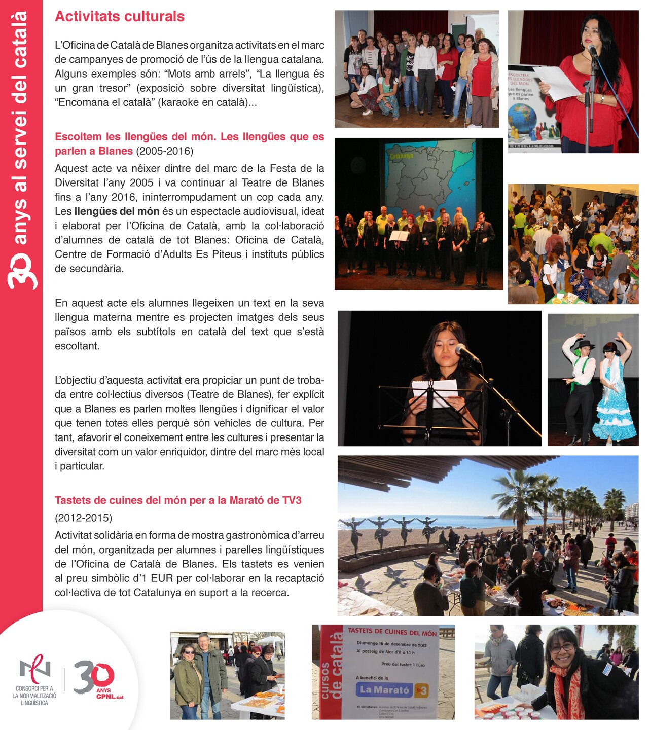 Amb motiu dels 30 anys de servei, l’Oficina de Català de Blanes va publicar un article a la revista de l’Arxiu Municipal Blanda, que resumeix la trajectòria d’aquest servei al llarg dels seus primers 30 anys (1987-2007): més de 17.000 alumnes i 650 cursos de català, a més d’activitats i materials de divulgació lingüística, i va elaborar una exposició amb 22 plafons, que es va dur a terme el març de 2018 en el marc de l’Any Pompeu Fabra.