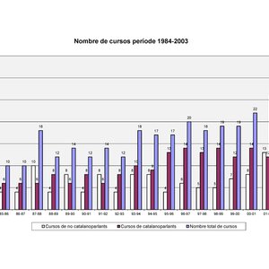Evolució dels cursos de català de Blanes període 1984-2004, publicat a la revista de l’Arxiu Municipal Blanda, l’any 2004