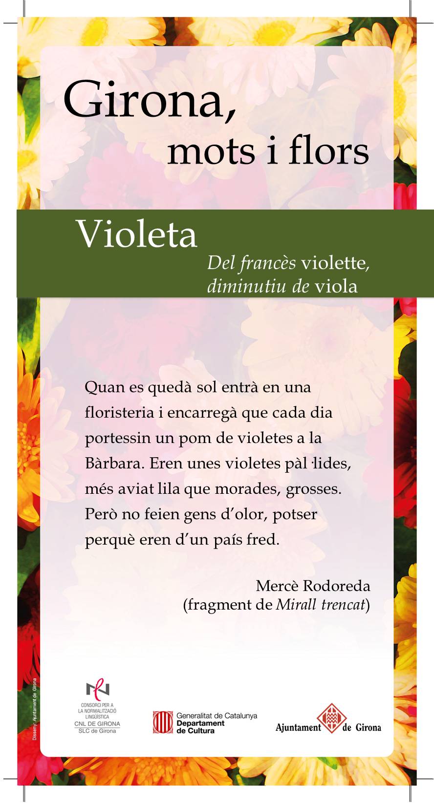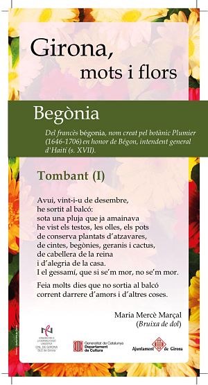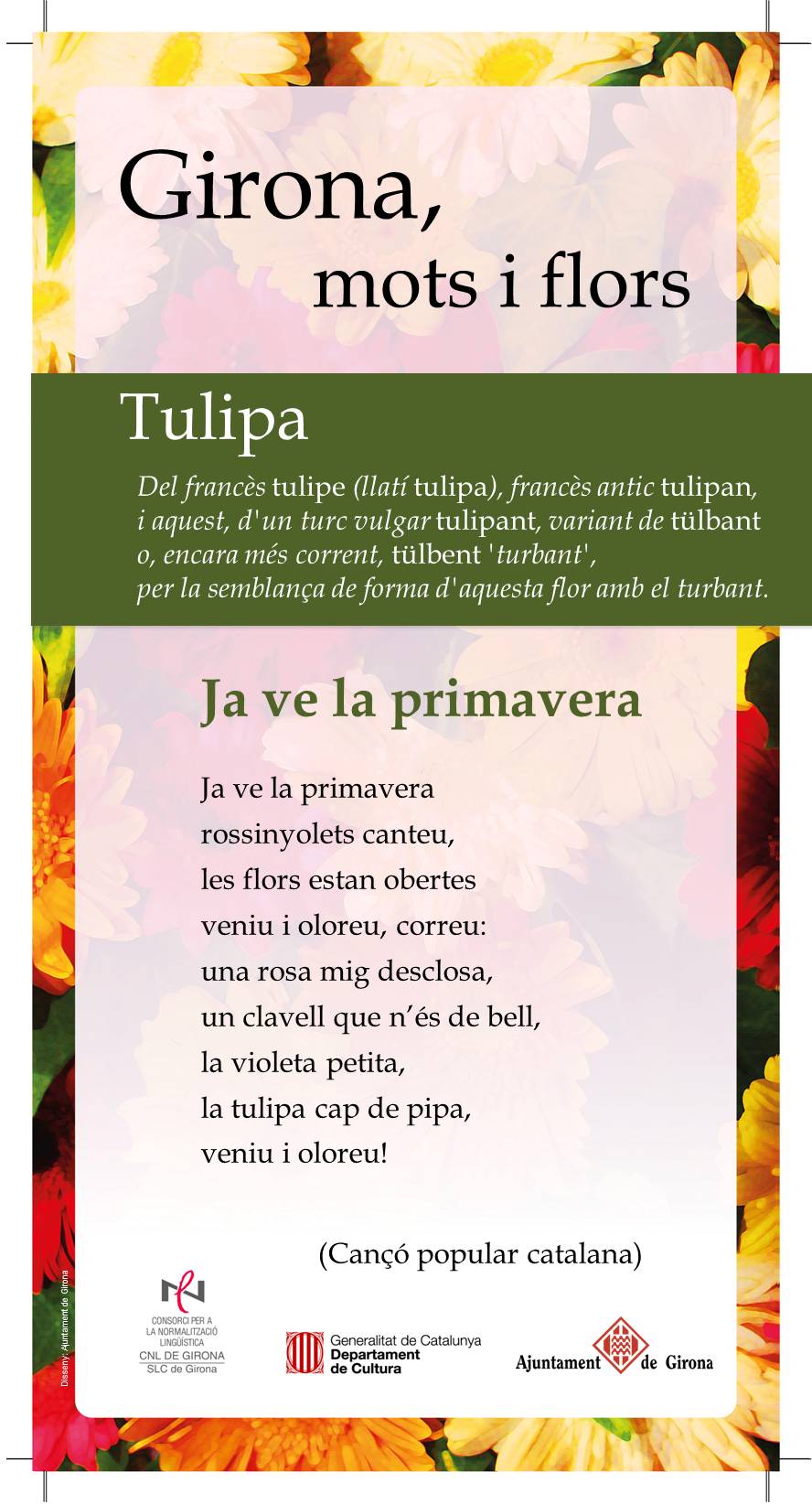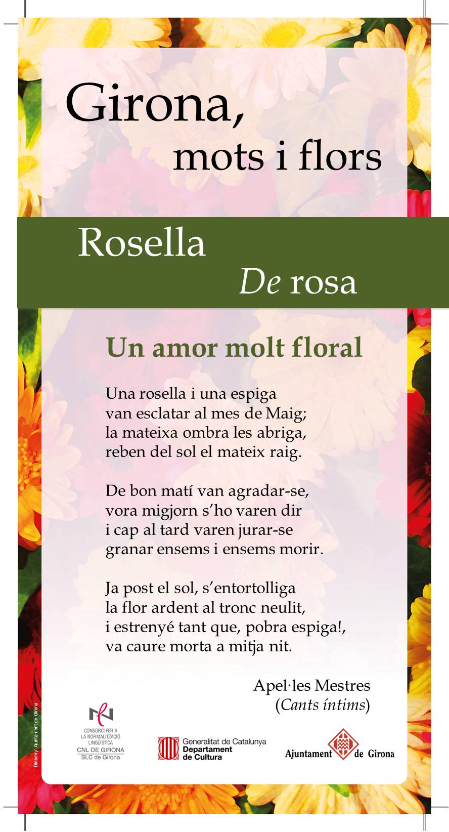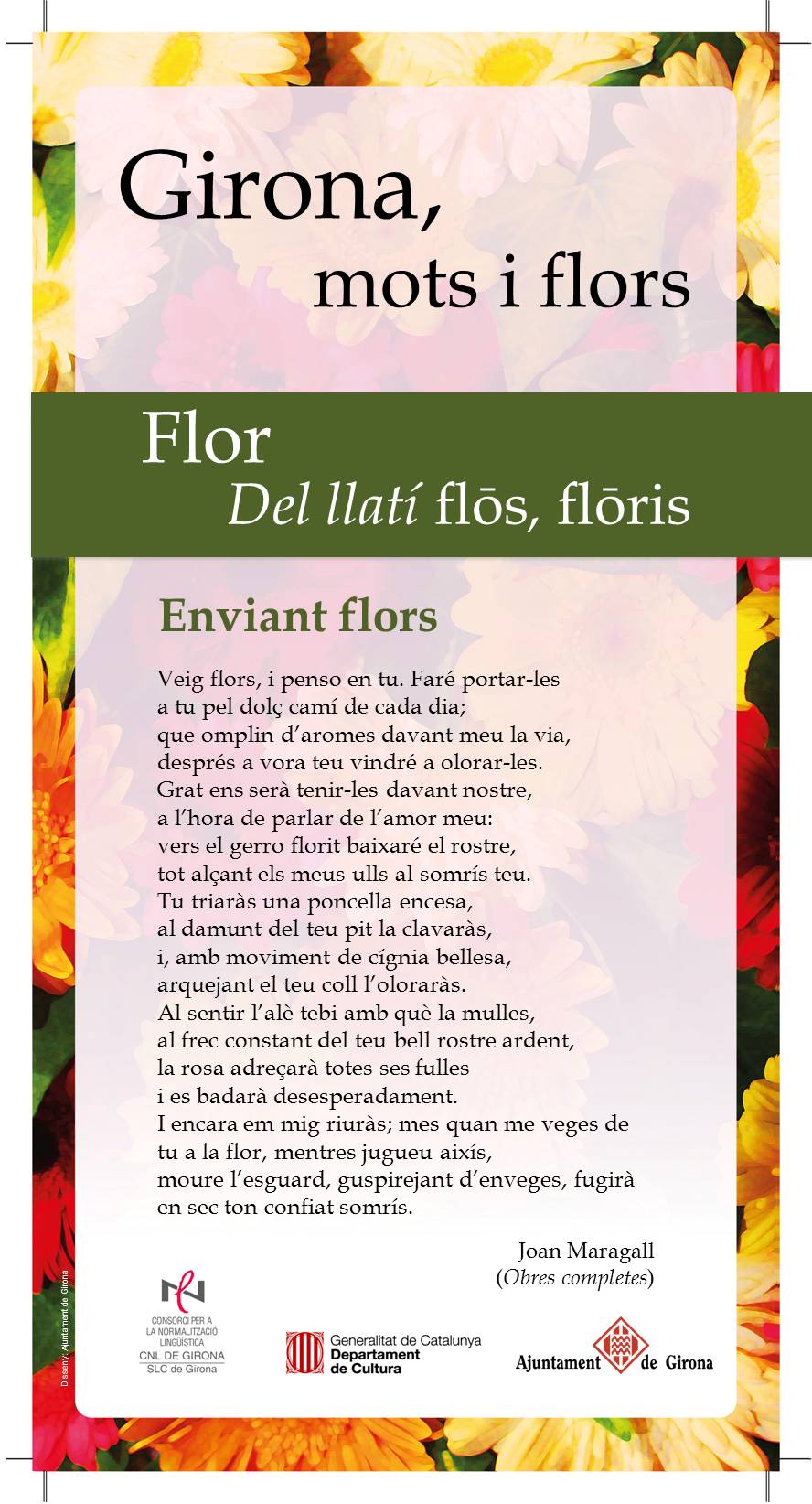Cartells i punts de llibre mostren l'etimologia de vint-i-cinc flors i textos d'autors com Joana Raspall, Josep Carner, Narcís Comadira, Joan Salvat-Papasseit, Mercè Rodoreda, Joan Margarit o Maria Mercè Marçal, entre d'altres.