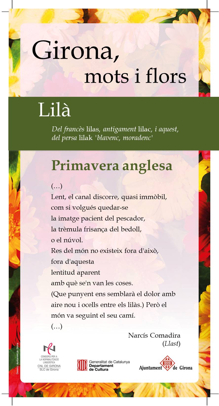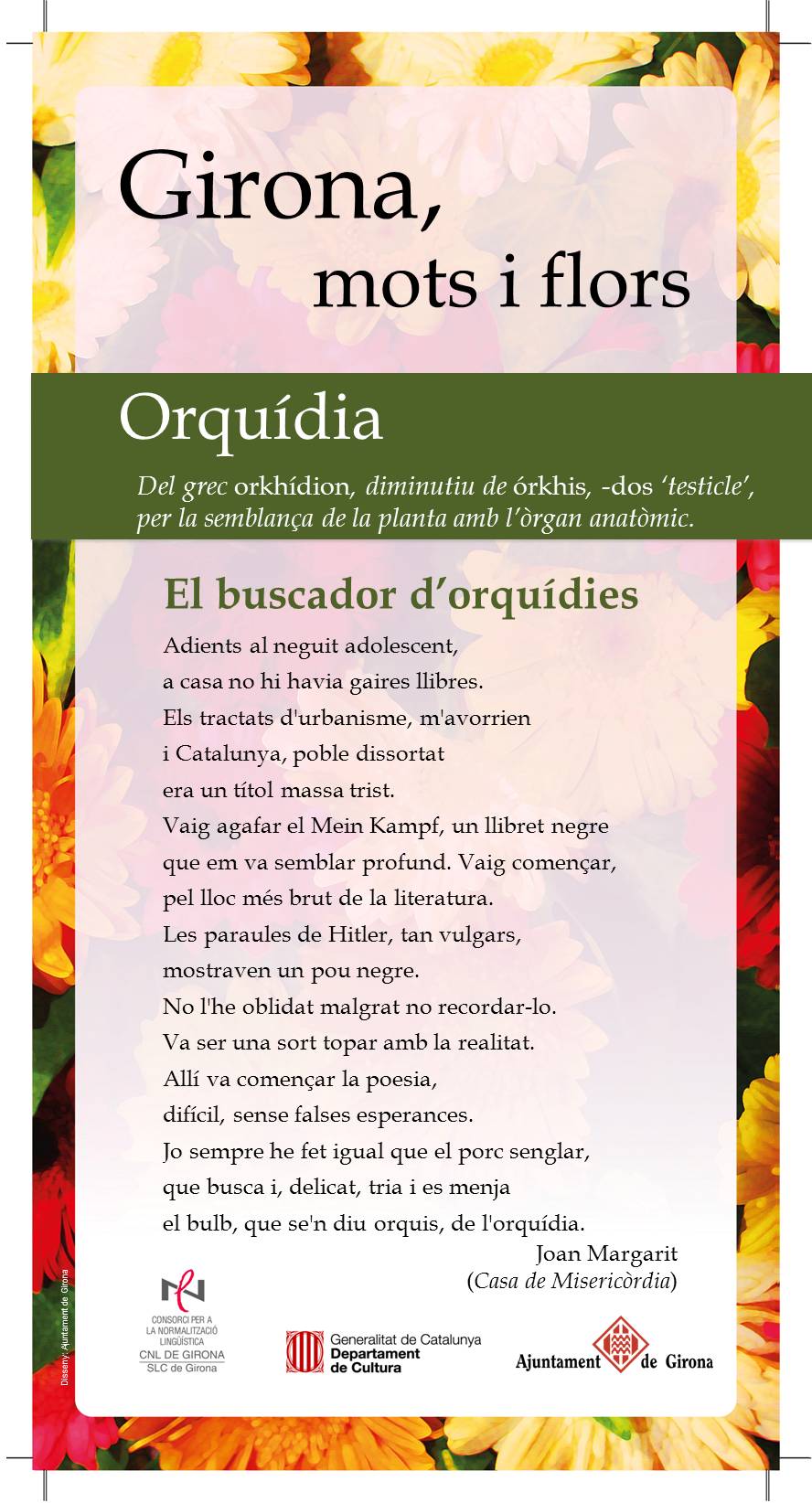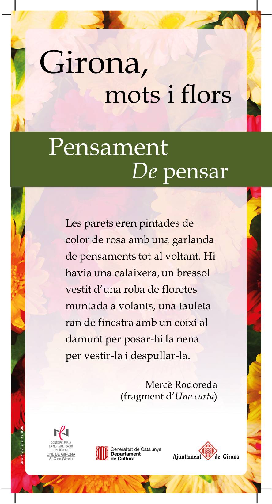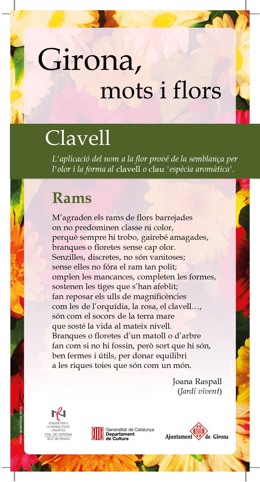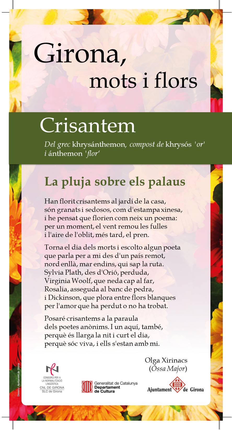 Cartells i punts de llibre mostren l'etimologia de vint-i-cinc flors i textos d'autors com Joana Raspall, Josep Carner, Narcís Comadira, Joan Salvat-Papasseit, Mercè Rodoreda, Joan Margarit o Maria Mercè Marçal, entre d'altres.