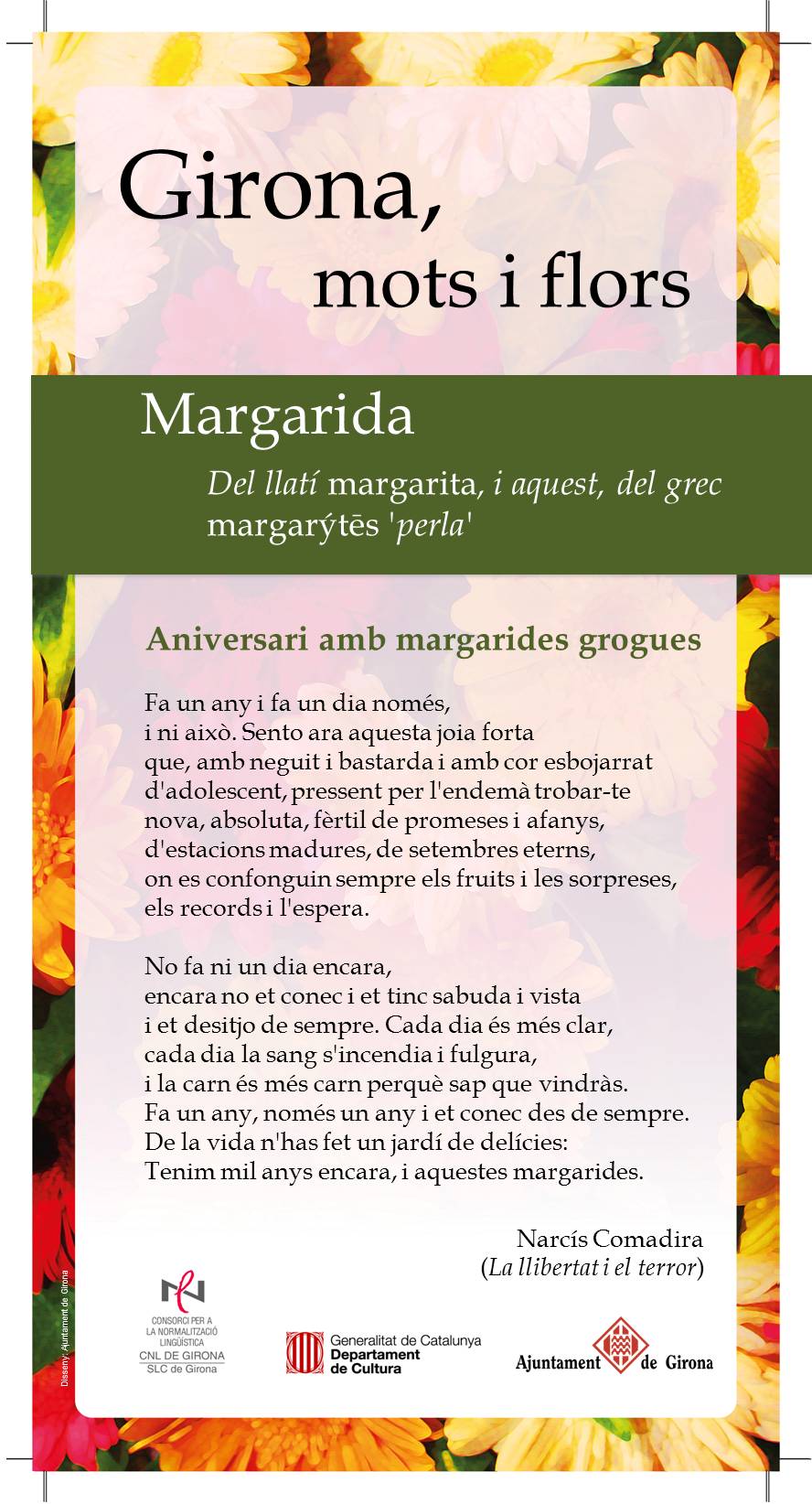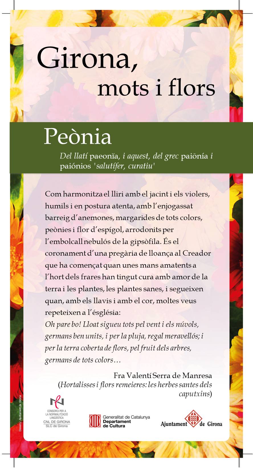 Girona, mots i flors és una iniciativa del Servei Local de Català de Girona i l'Ajuntament per fer presents la llengua i les flors a la ciutat durant més de tres setmanes: de Sant Jordi al Temps de Flors. Aquesta és la segona edició.