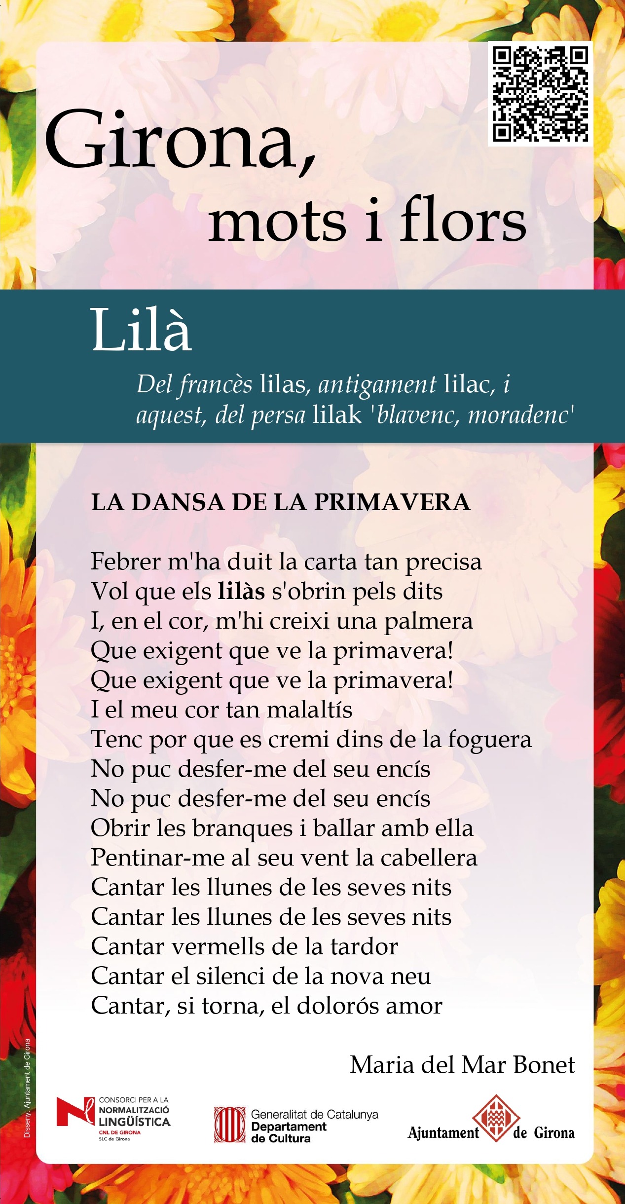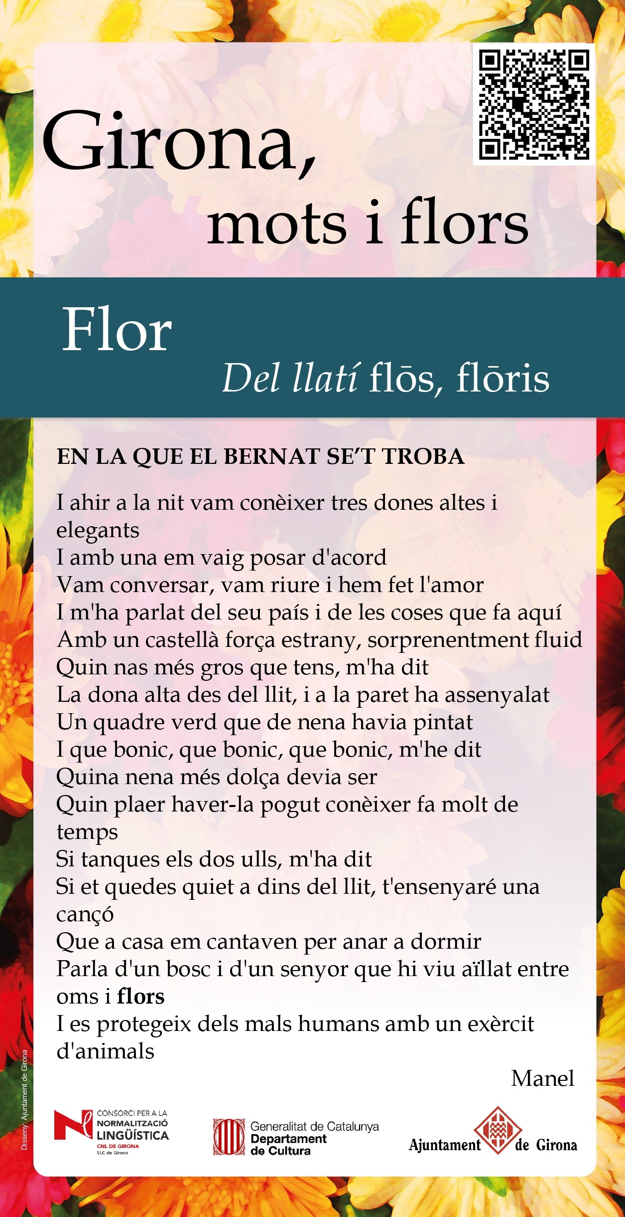 Girona, mots i flors és una iniciativa del Servei Local de Català de Girona i l'Ajuntament per fer presents la llengua i les flors a la ciutat durant més de tres setmanes: de Sant Jordi al Temps de Flors. Aquest any se celebra la vuitena edició, que estarà en marxa fins al 15 de maig.