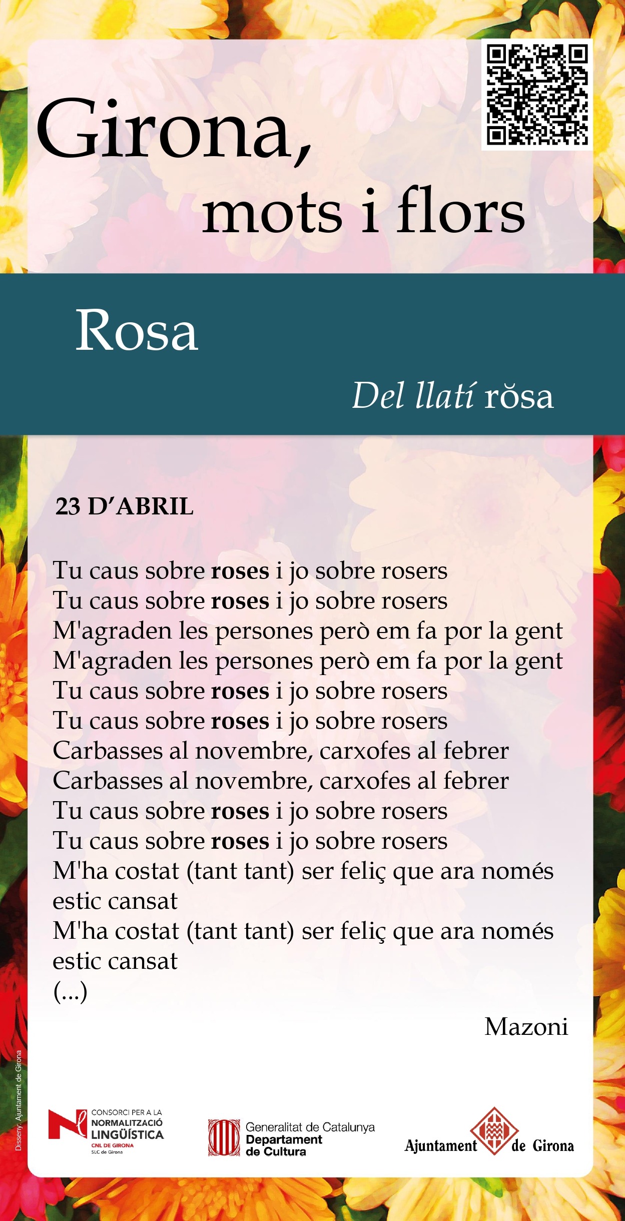 Els cartells i punts de llibre tenen el nom d'aquestes flors, la seva etimologia i un text que les il·lustra. En l’edició d’enguany s’han escollit cançons de grups i cantants dels Països Catalans: Núria Feliu, Peix Fregit, Manel, Sanjosex i Carles Belda, Joan Miquel Oliver, L’Espingari, Pau Vallvé, Joan Manuel Serrat, La Troba Kung-Fú, Renaldo & Clara, Maria del Mar Bonet, Adrià Puntí, Maria Coma, Antònia Font, Vitruvi, Mazoni, Xavier Ribalta, El Pot Petit, Quimi Portet i Mireia Vives i Borja Penalba.