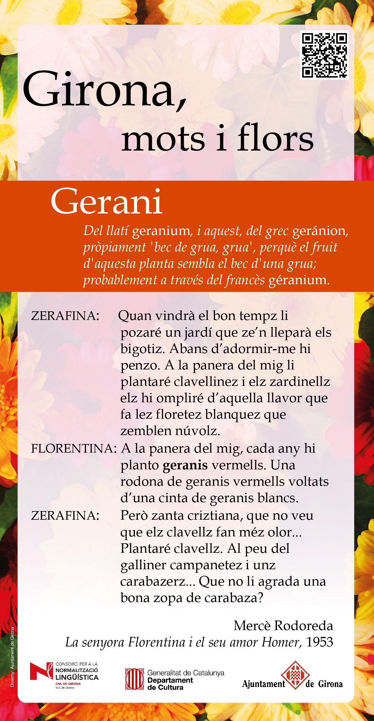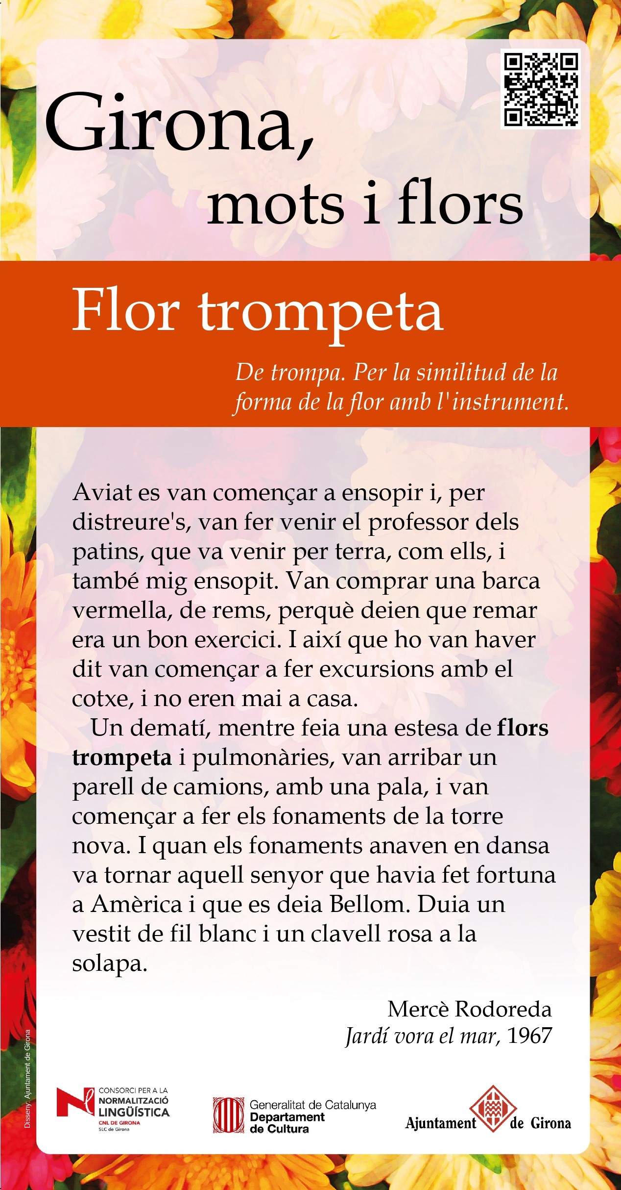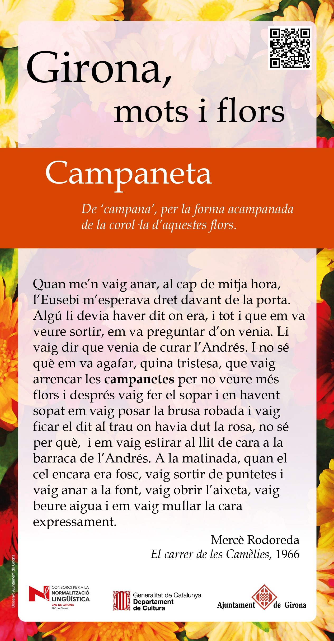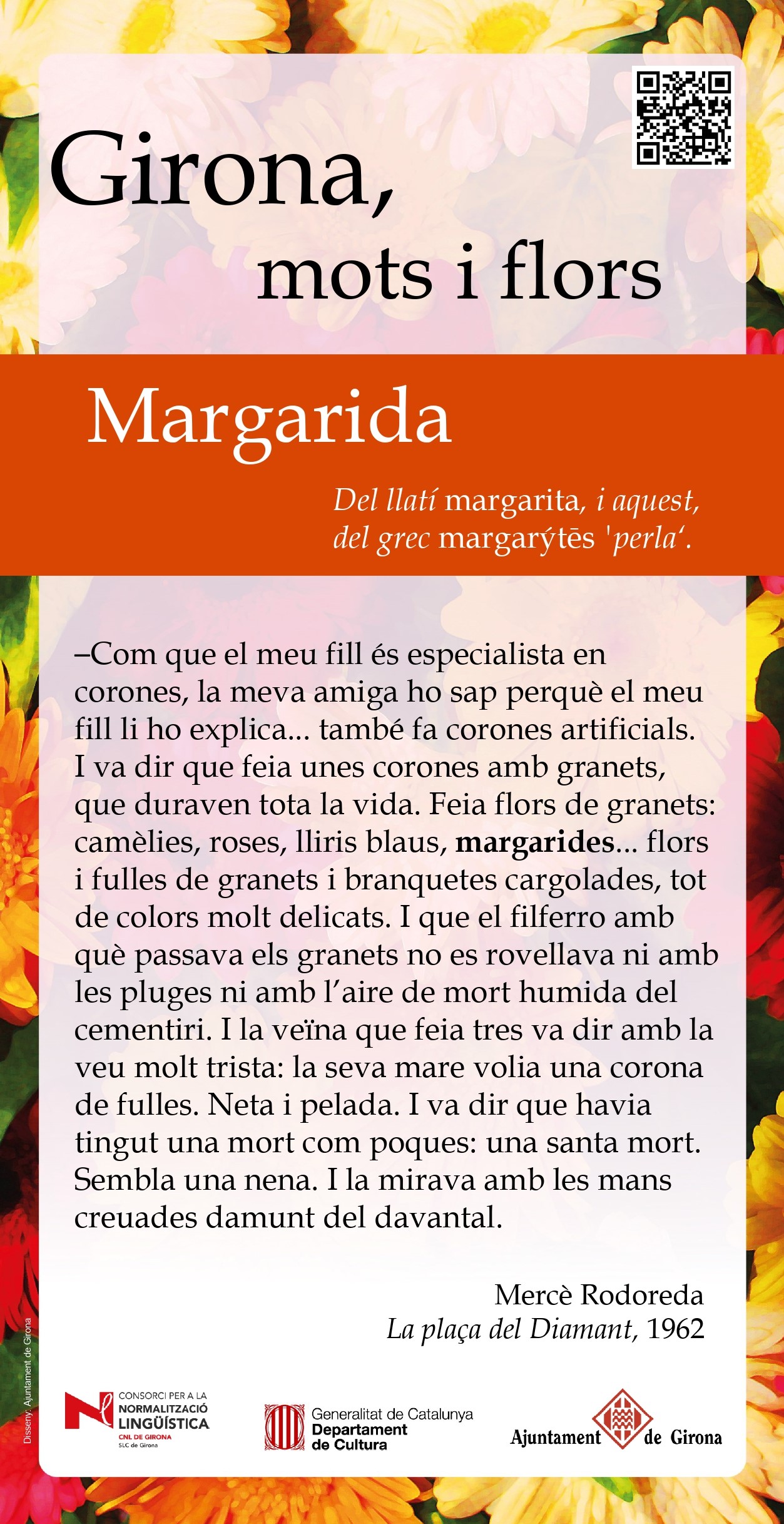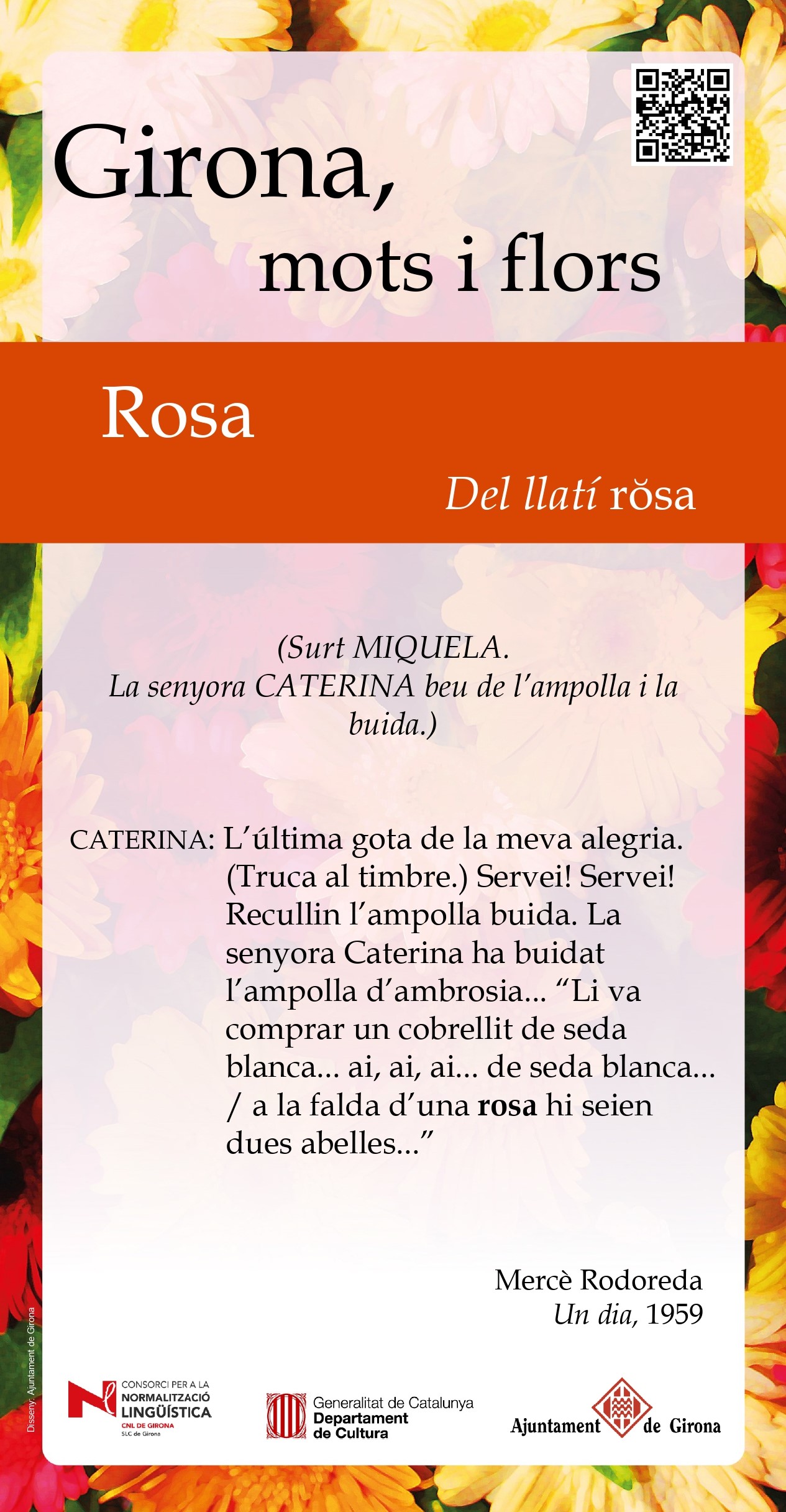 Els cartells i punts de llibre tenen el nom d'aquestes flors, la seva etimologia i un text que les il·lustra. En l’edició d’enguany s’han escollit textos de l’escriptora Mercè Rodoreda, en el quarantè aniversari de la seva mort. Les flors són molt presents en la seva obra. Als cartells i als punts de llibre hi ha un codi QR que porta a la pàgina web de la Fundació Mercè Rodoreda, que aglutina tota la informació de la vida i obra de l’escriptora.