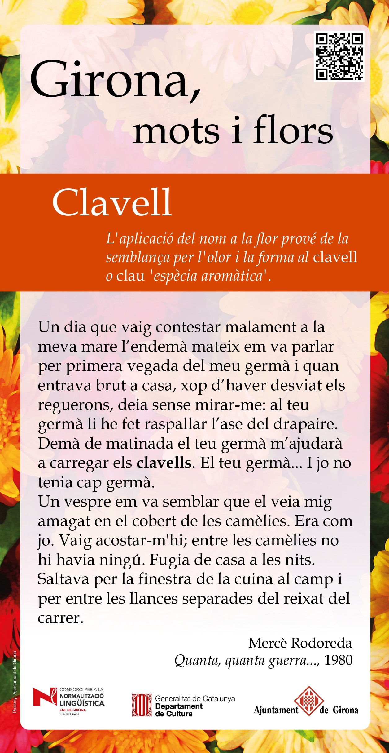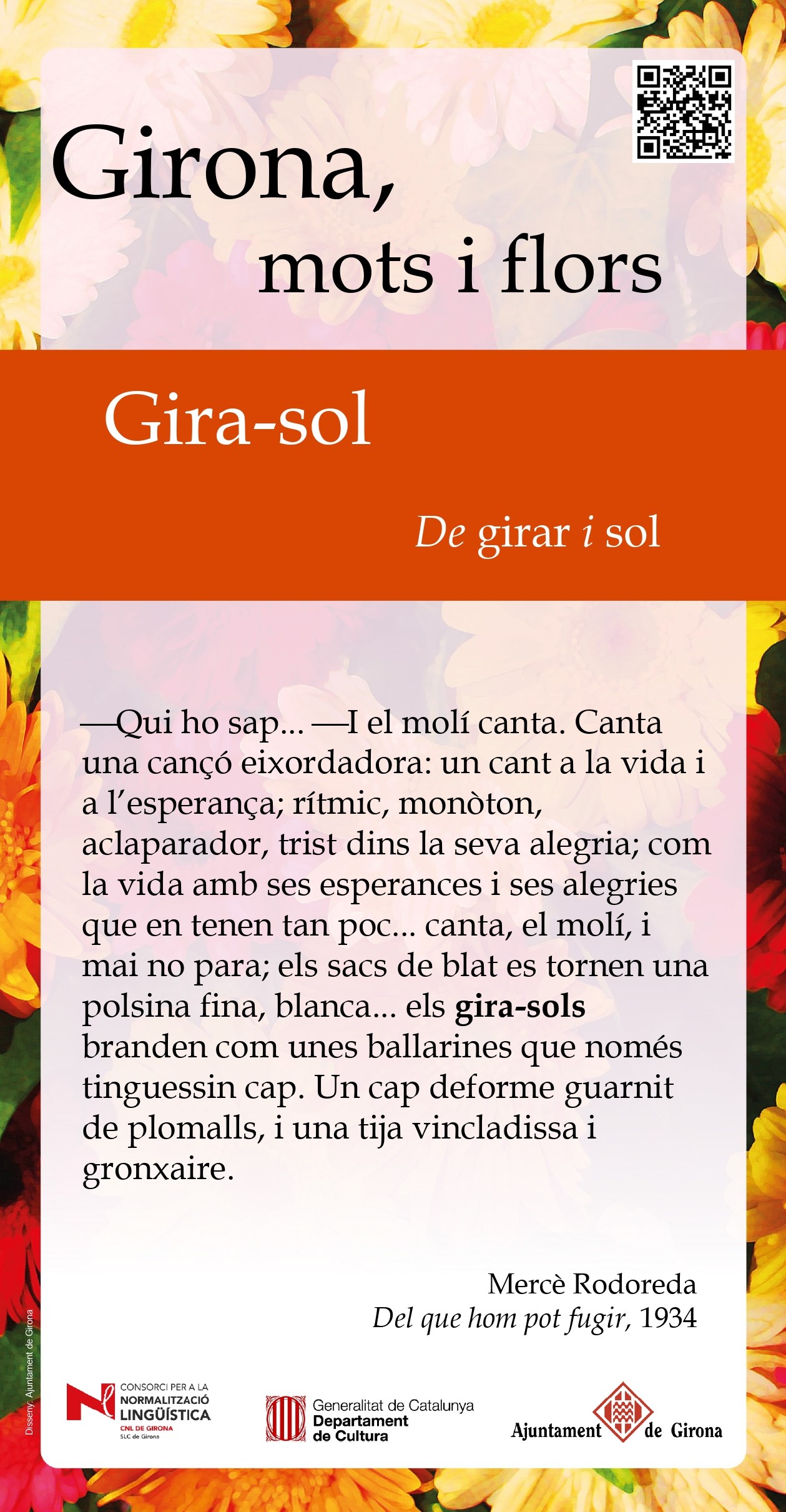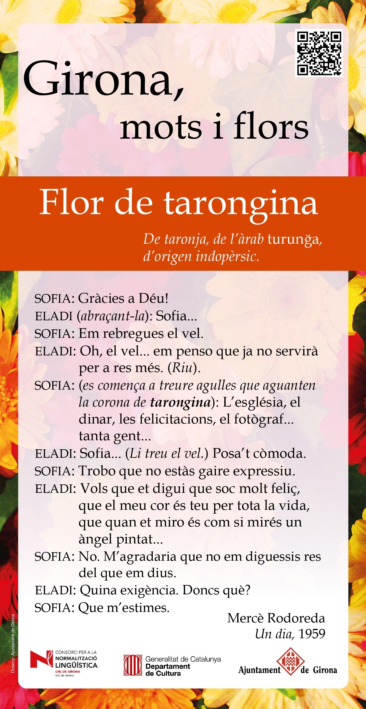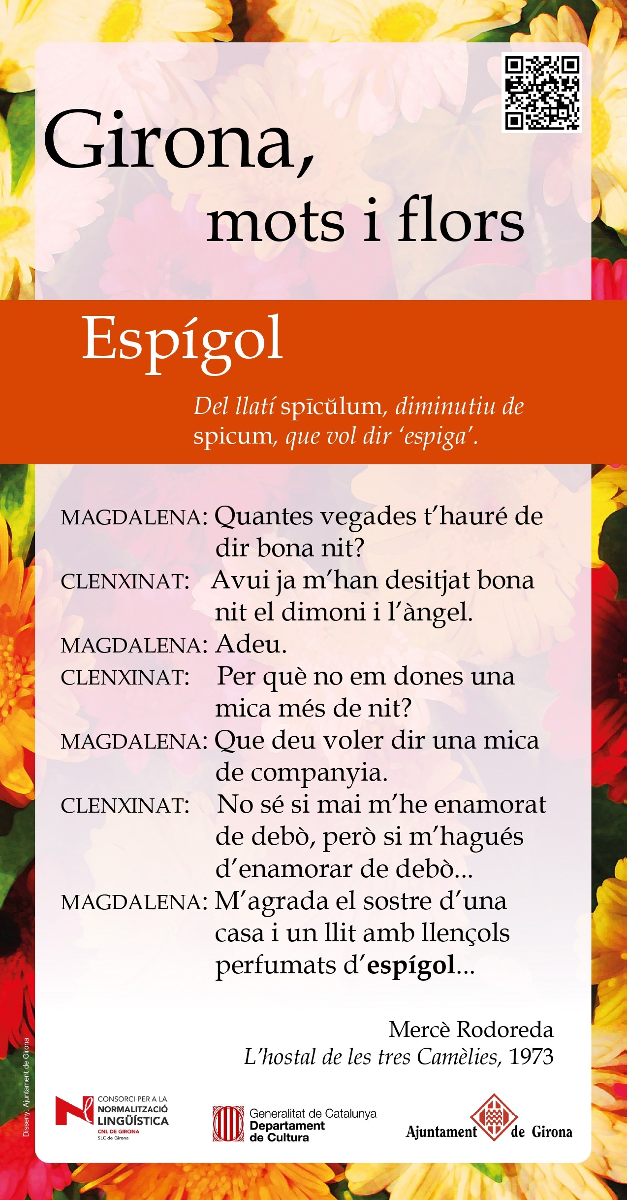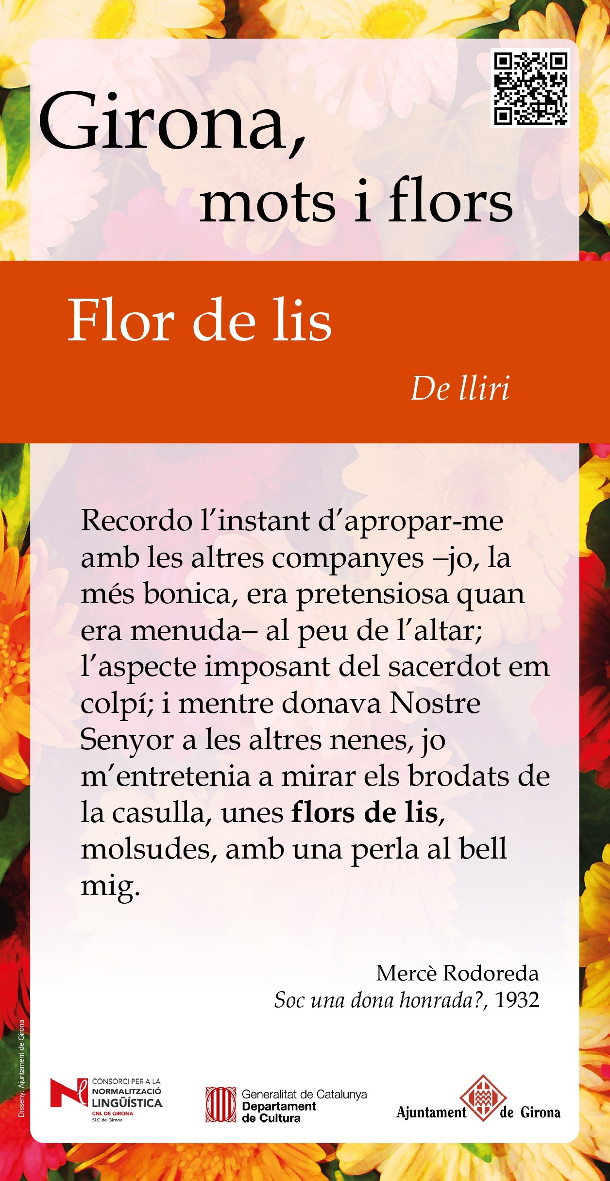 Els cartells i punts de llibre tenen el nom d'aquestes flors, la seva etimologia i un text que les il·lustra. En l’edició d’enguany s’han escollit textos de l’escriptora Mercè Rodoreda, en el quarantè aniversari de la seva mort. Les flors són molt presents en la seva obra. Als cartells i als punts de llibre hi ha un codi QR que porta a la pàgina web de la Fundació Mercè Rodoreda, que aglutina tota la informació de la vida i obra de l’escriptora.
