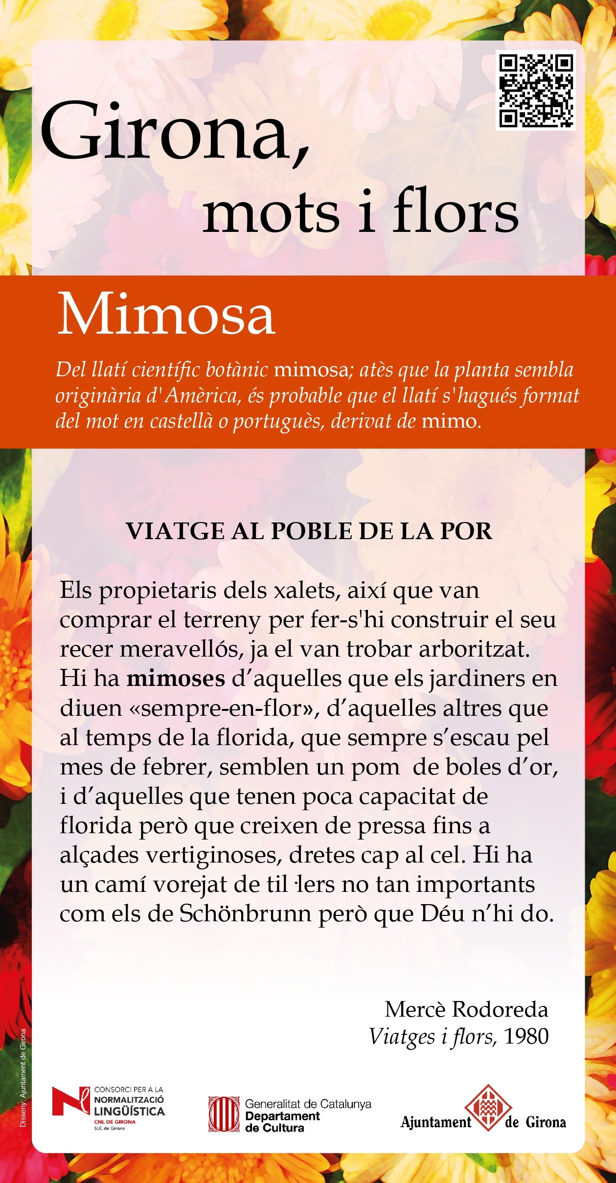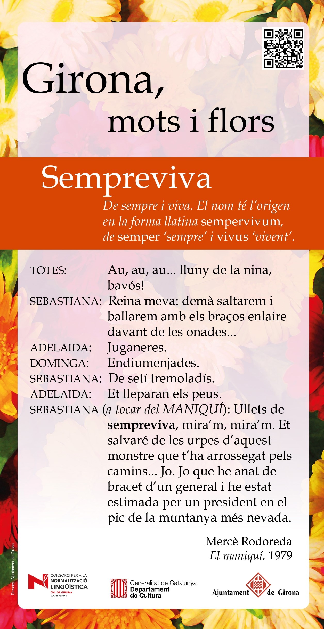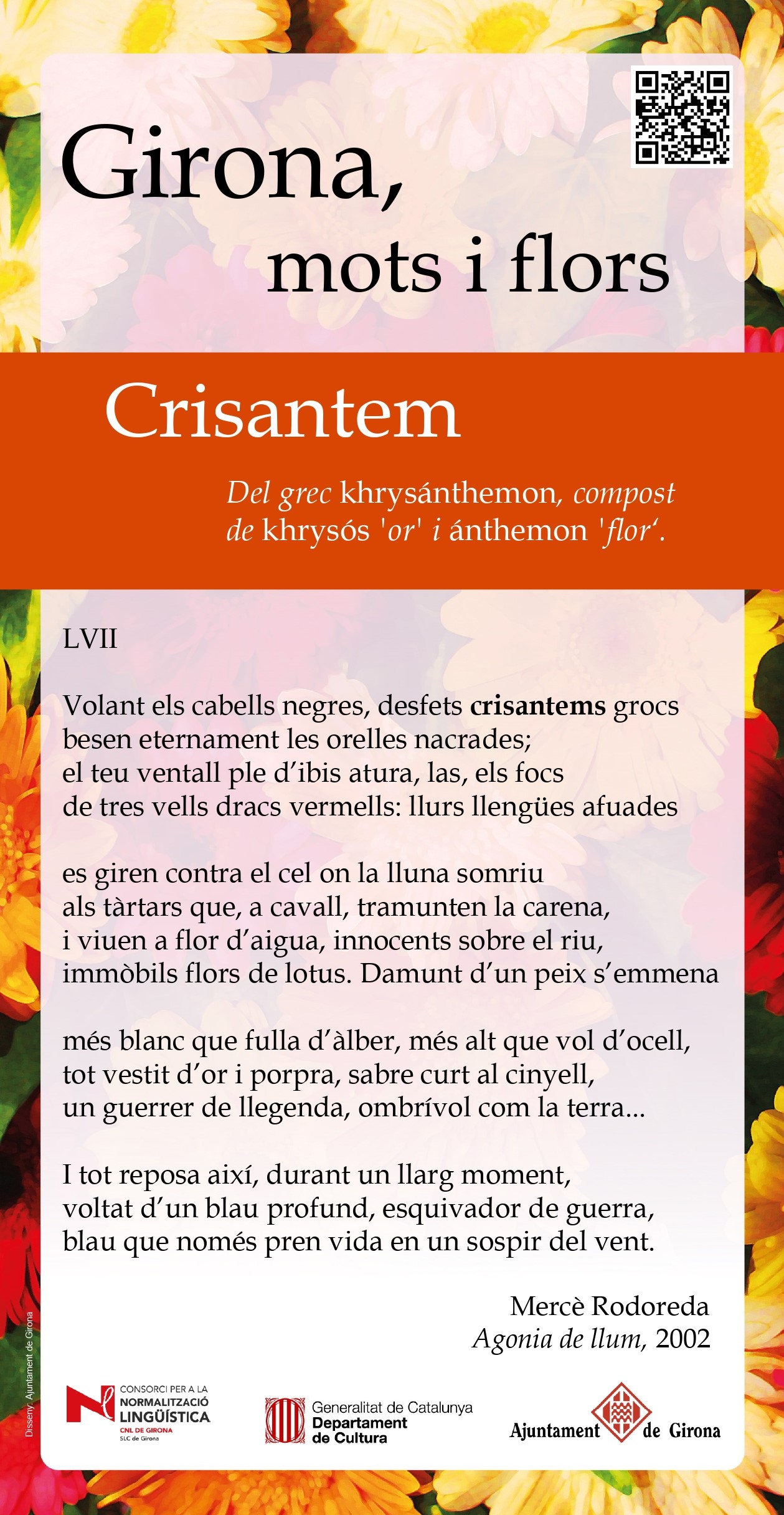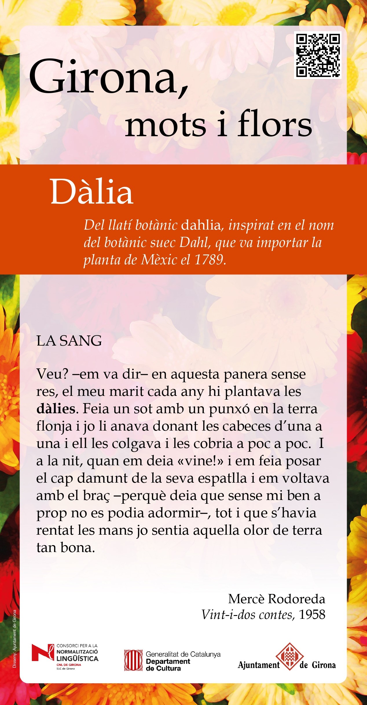 Els cartells i punts de llibre tenen el nom d'aquestes flors, la seva etimologia i un text que les il·lustra. En l’edició d’enguany s’han escollit textos de l’escriptora Mercè Rodoreda, en el quarantè aniversari de la seva mort. Les flors són molt presents en la seva obra. Als cartells i als punts de llibre hi ha un codi QR que porta a la pàgina web de la Fundació Mercè Rodoreda, que aglutina tota la informació de la vida i obra de l’escriptora.
