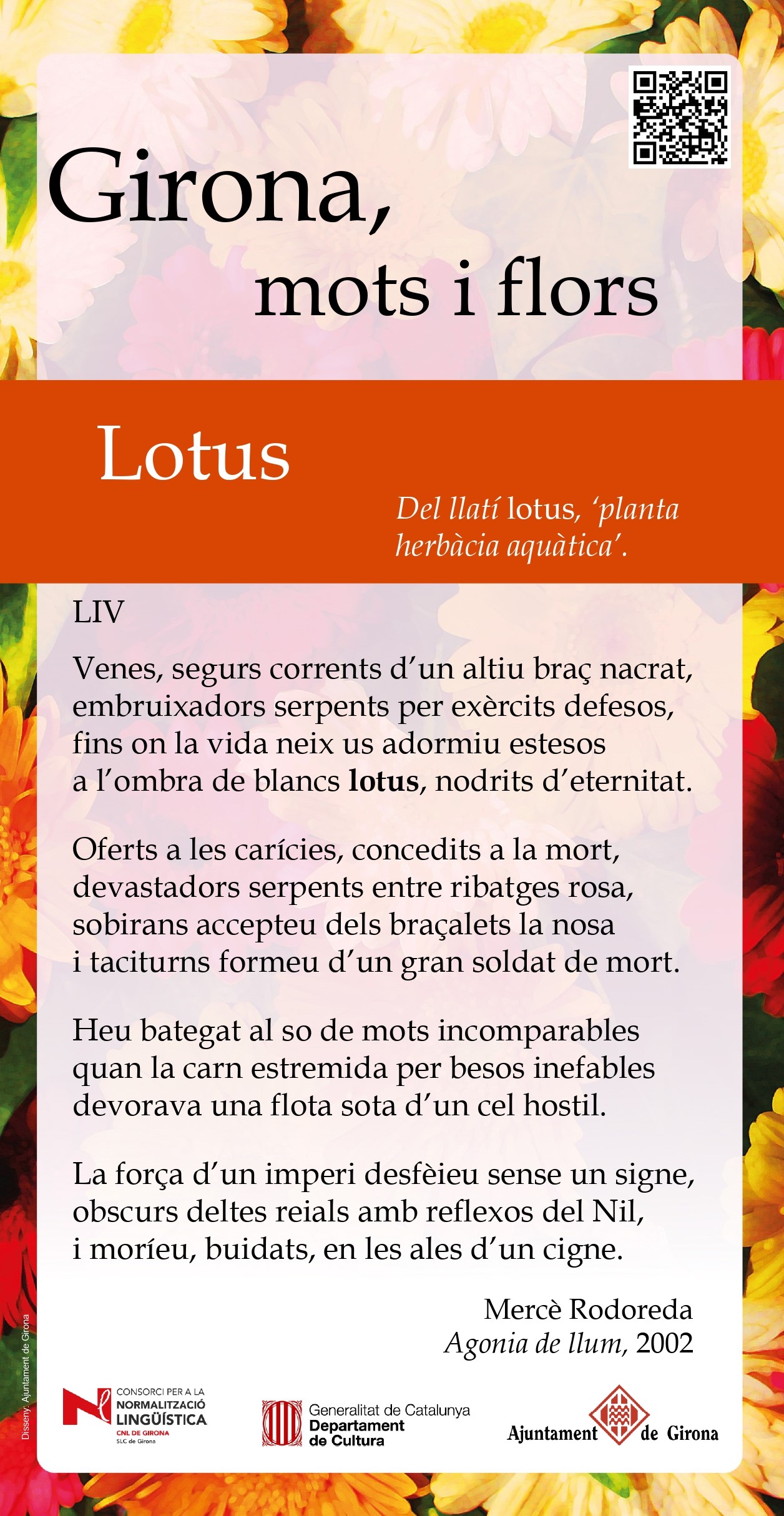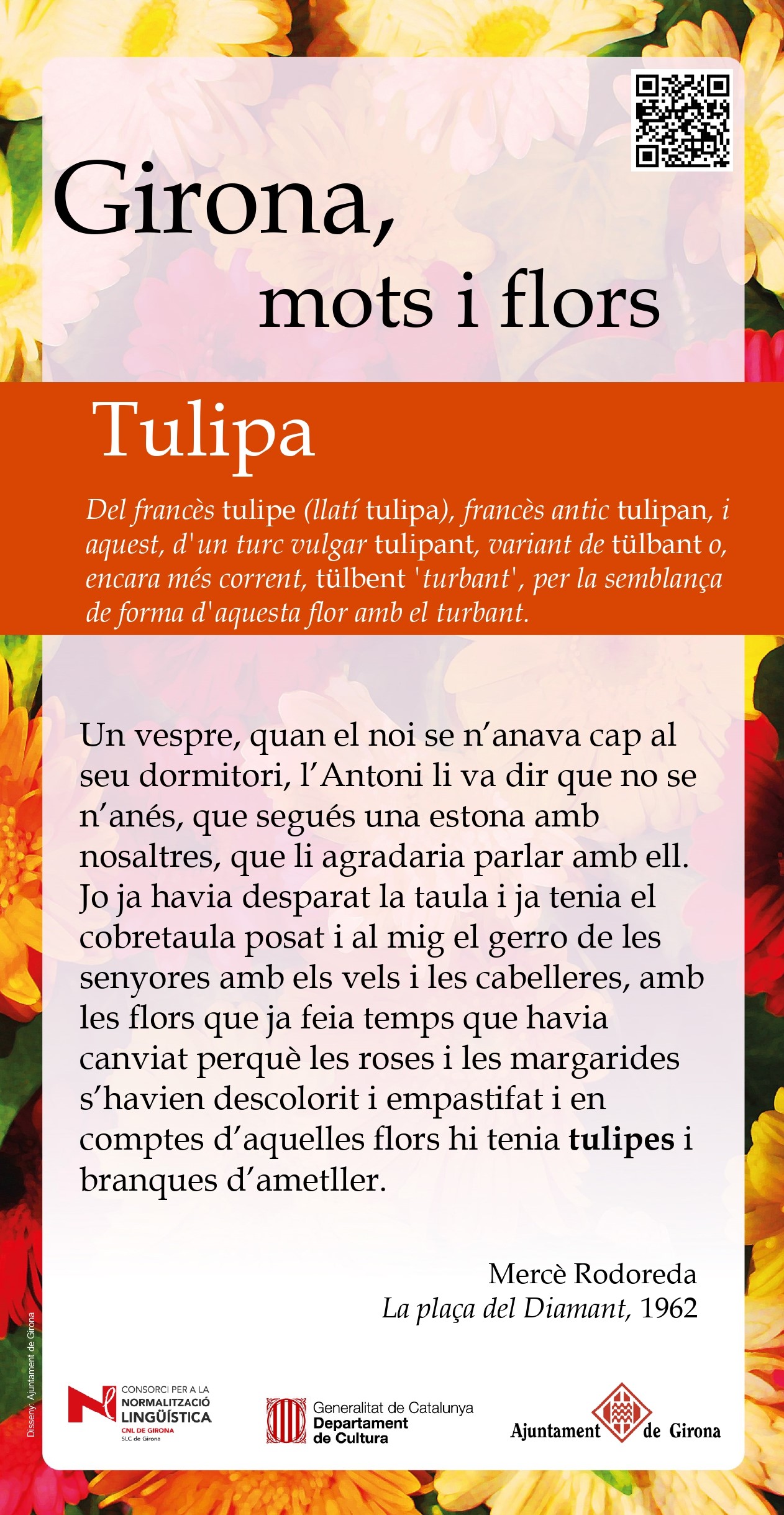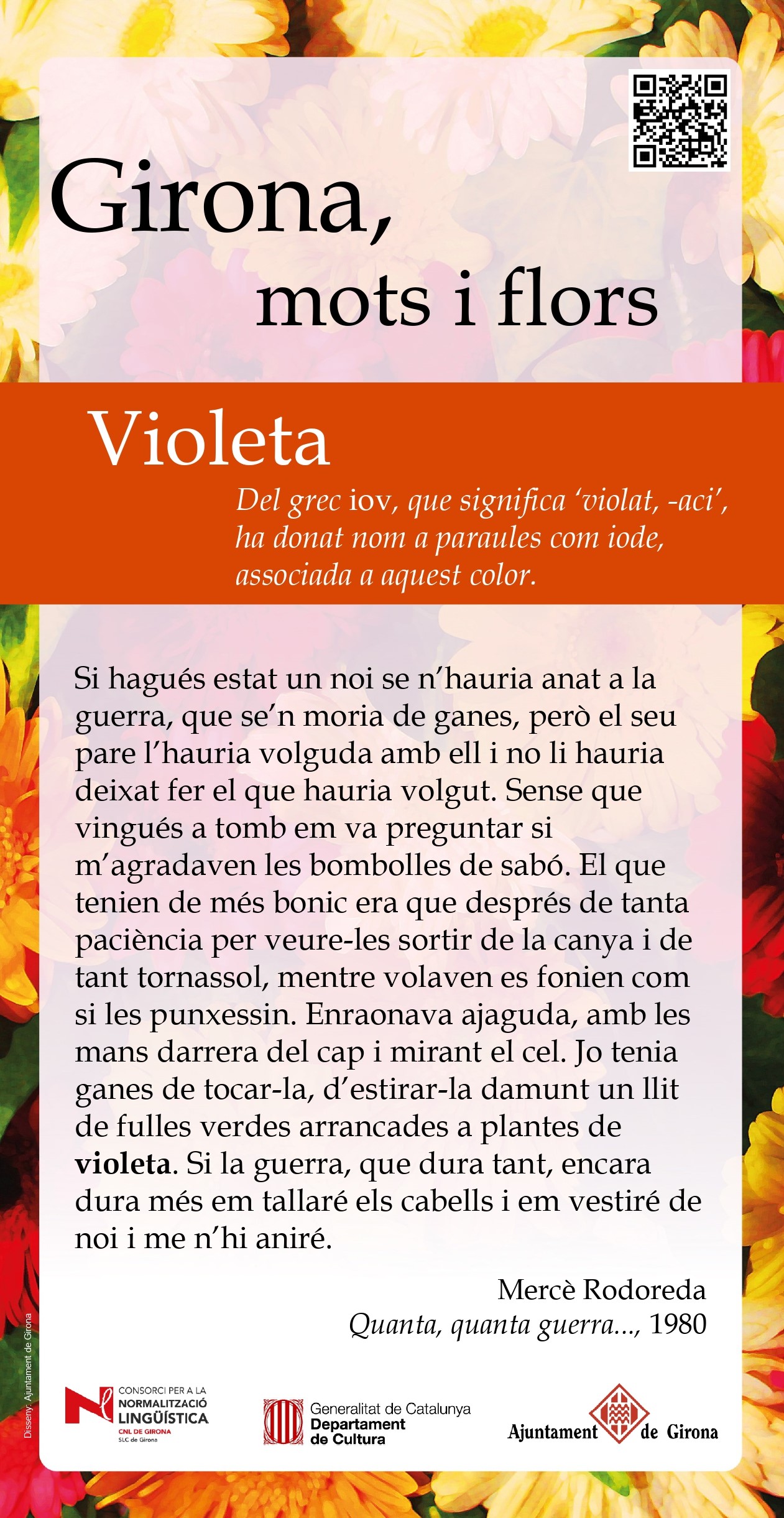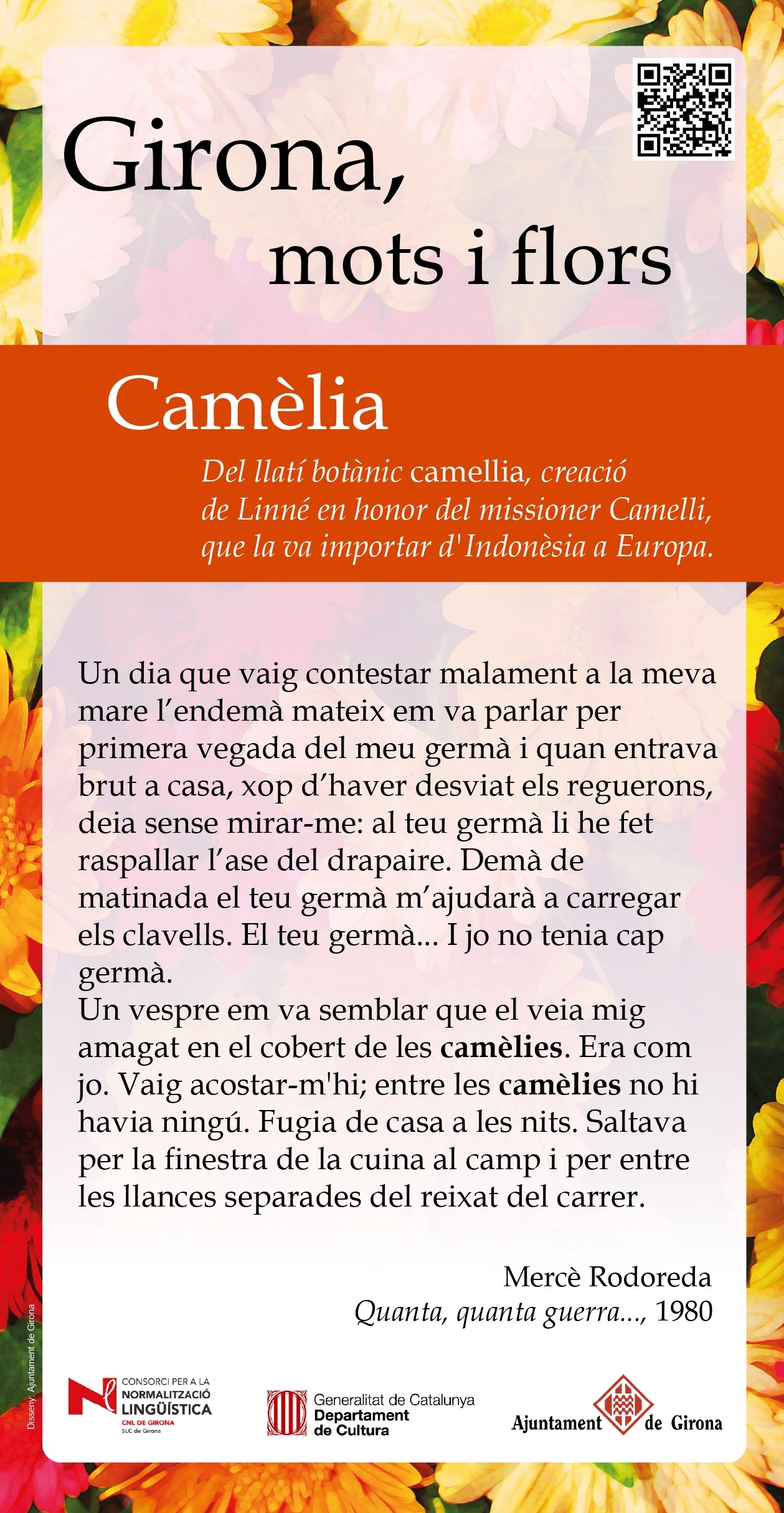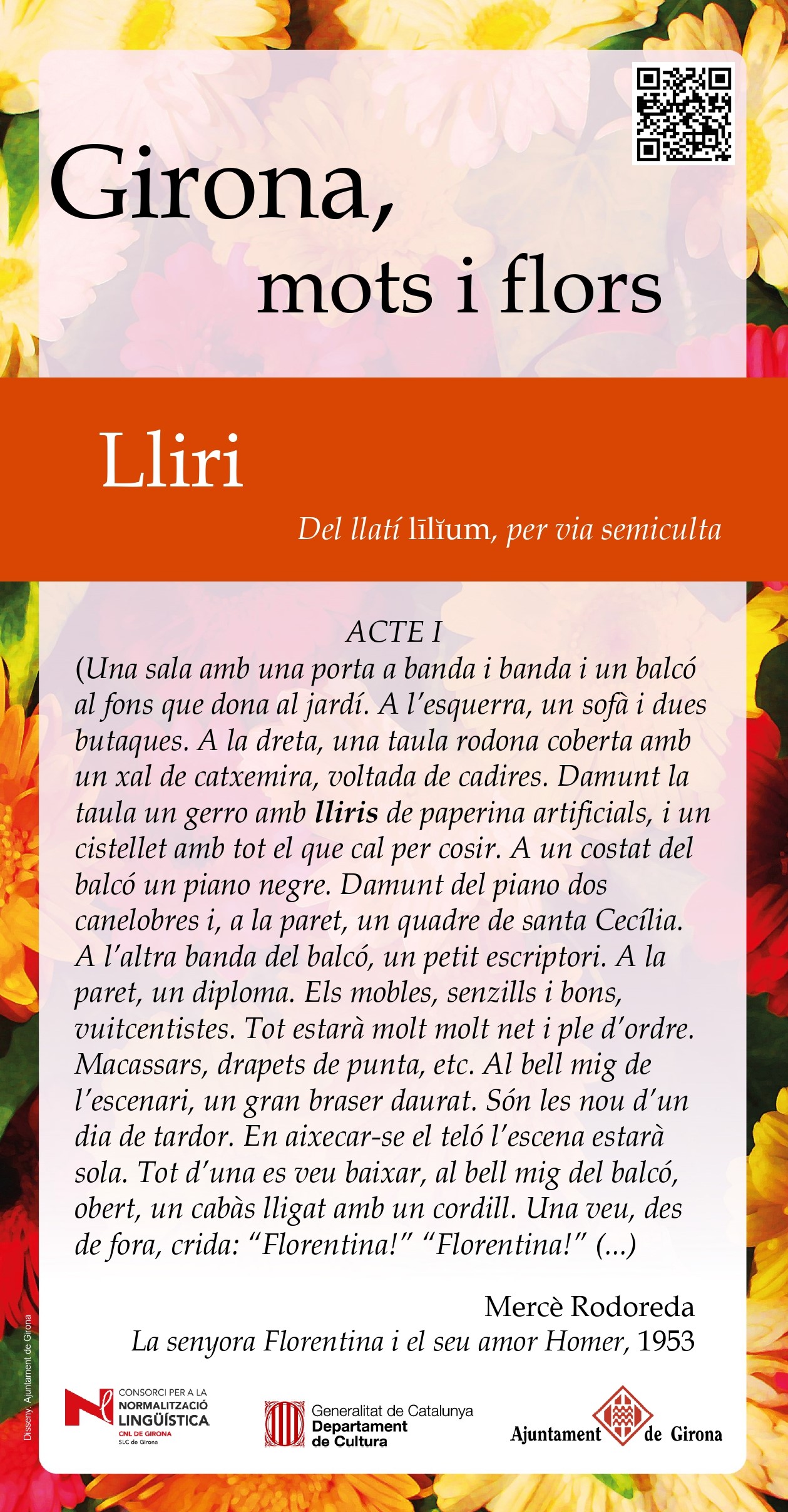 Els cartells i punts de llibre tenen el nom d'aquestes flors, la seva etimologia i un text que les il·lustra. En l’edició d’enguany s’han escollit textos de l’escriptora Mercè Rodoreda, en el quarantè aniversari de la seva mort. Les flors són molt presents en la seva obra. Als cartells i als punts de llibre hi ha un codi QR que porta a la pàgina web de la Fundació Mercè Rodoreda, que aglutina tota la informació de la vida i obra de l’escriptora.